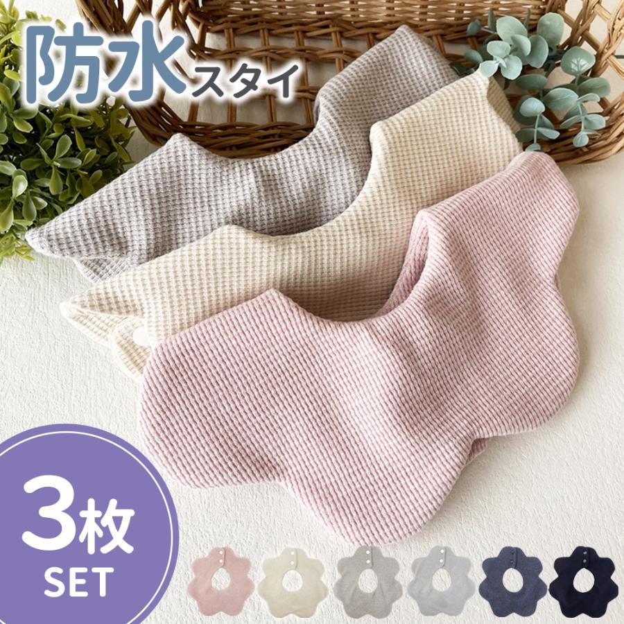 スタイ 防水 3枚 セット 360° 赤ちゃん ベビー よだれカバー よだれかけ 無地 シンプルかわいい おしゃれ