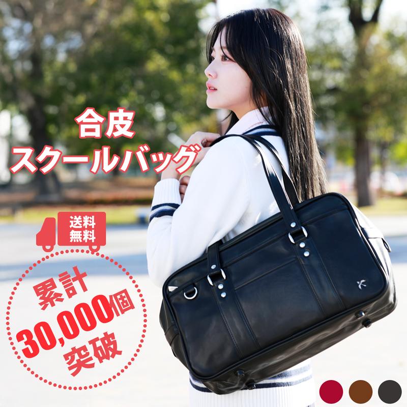 スクールバッグ 合皮 スクバ 大容量 大きめ 軽量 丈夫 雨に強い 女子 男子 人気 全2色 CONOMi 革 高校生 学生 学校 ブラック 黒 ブラウン 茶色