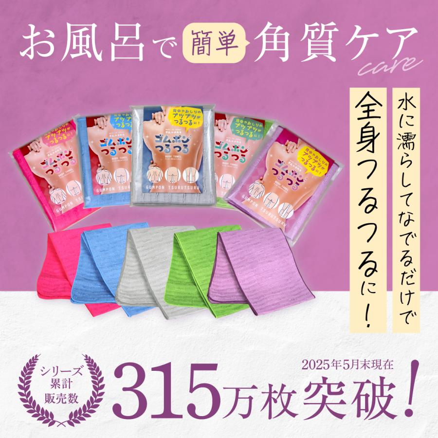 心地よい刺激をもたらし、ゴムのチカラでお肌をやさしく“つるつる”に磨き上げます。