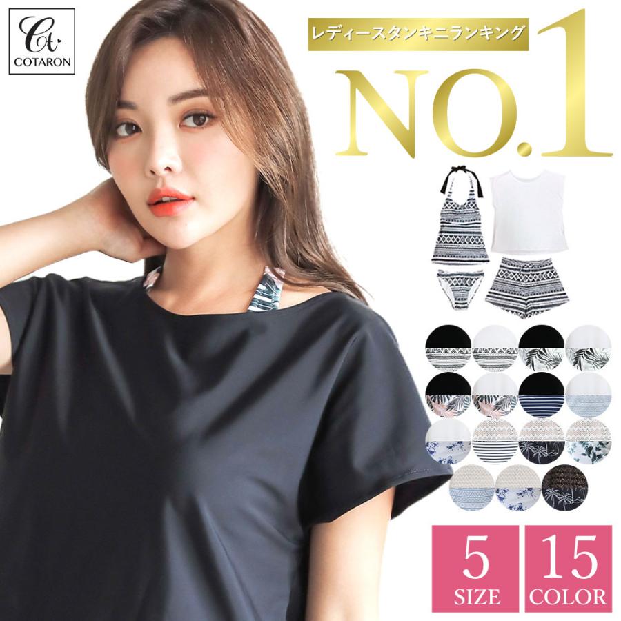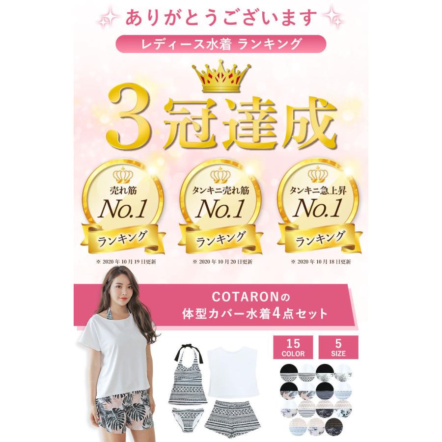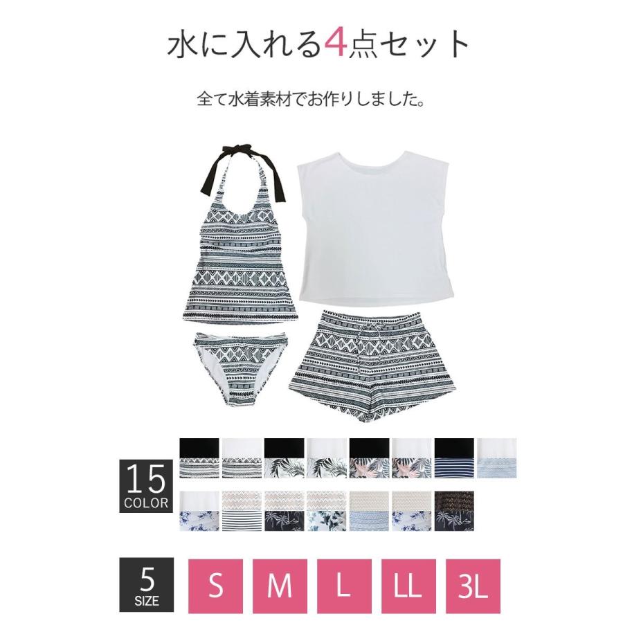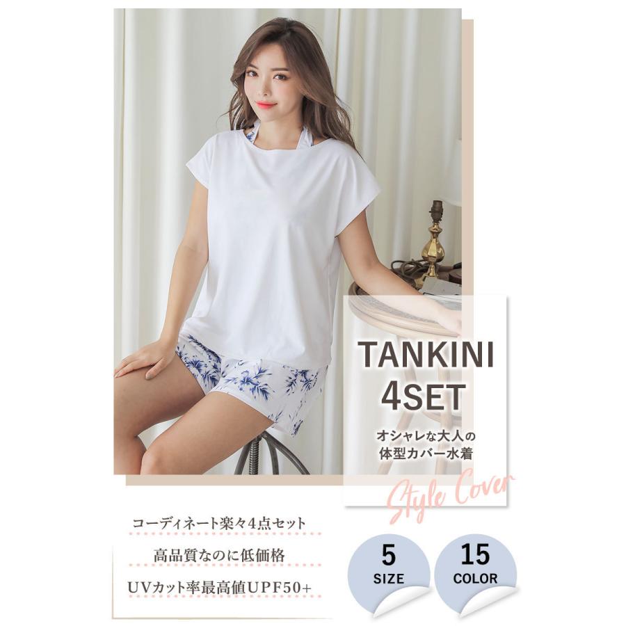 水着 レディース 体型カバー ママ水着 30代 40代 50代 大人 セット水着 かわいい おしゃれ タンキニ カバーアップ オーバーTシャツ ショートパンツ 4点セット