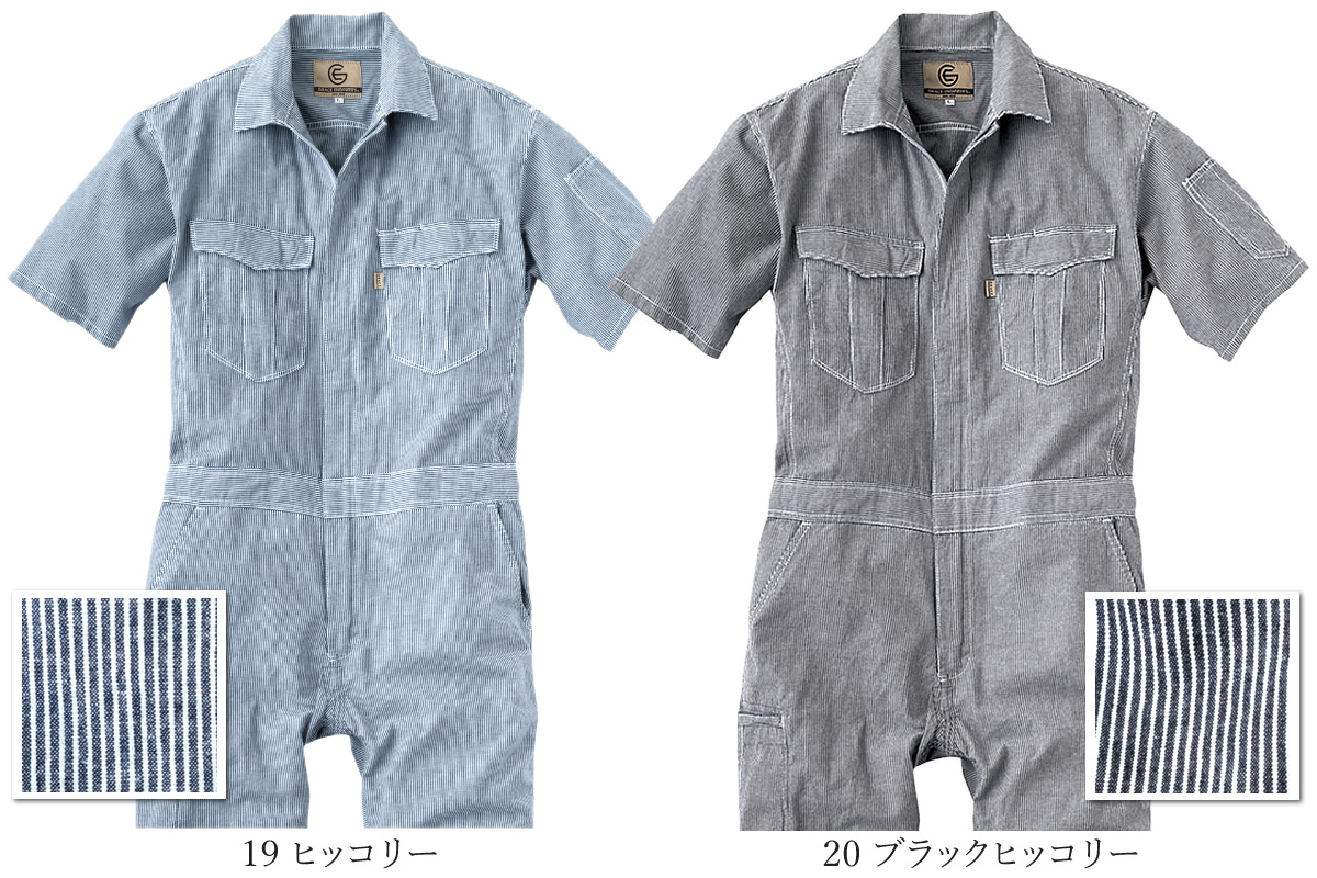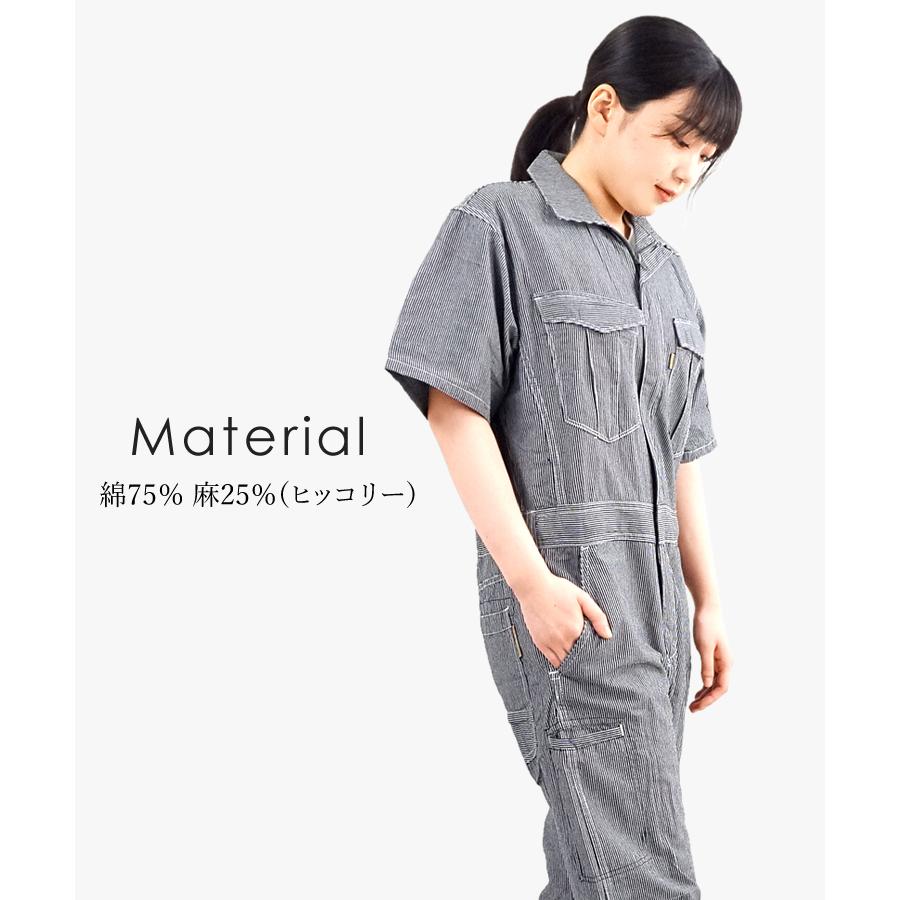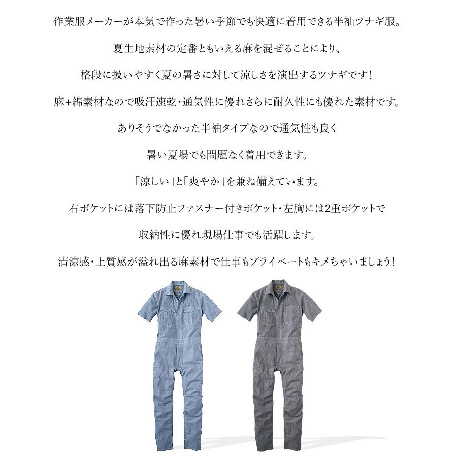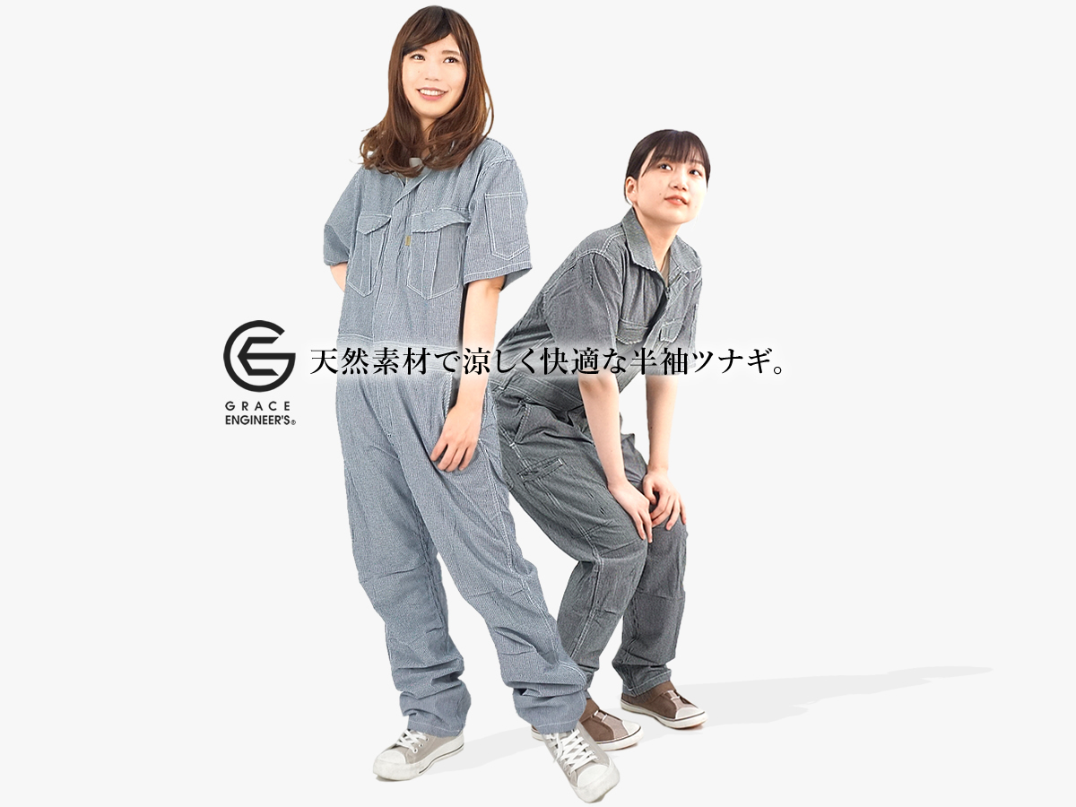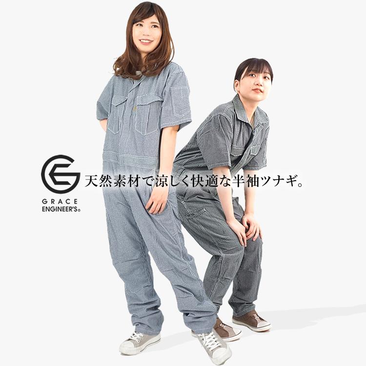ツナギ メンズ レディース 半袖 つなぎ 作業服 春夏用 ヒッコリー 綿麻 グレースエンジニアーズ 男性 女性 GE585 (取り寄せ商品)