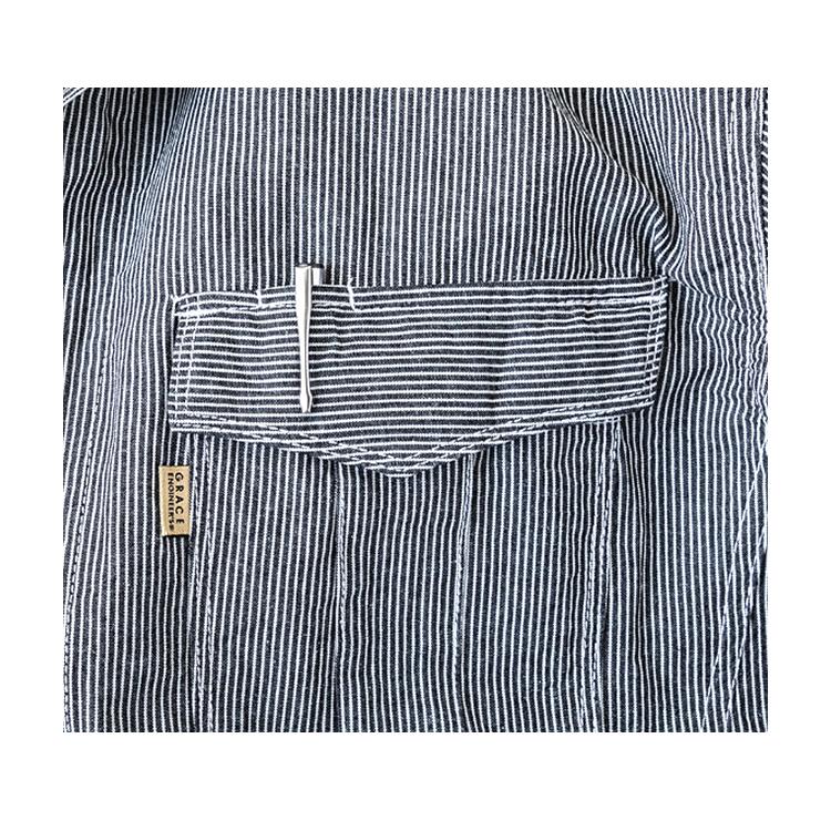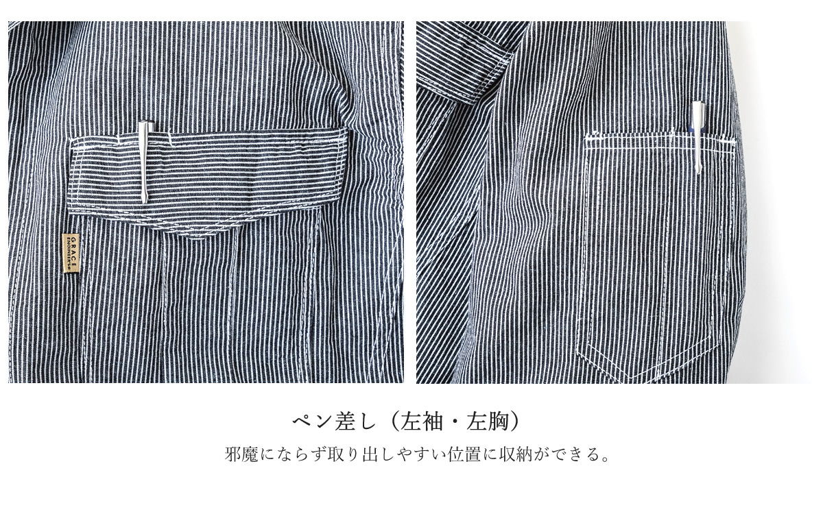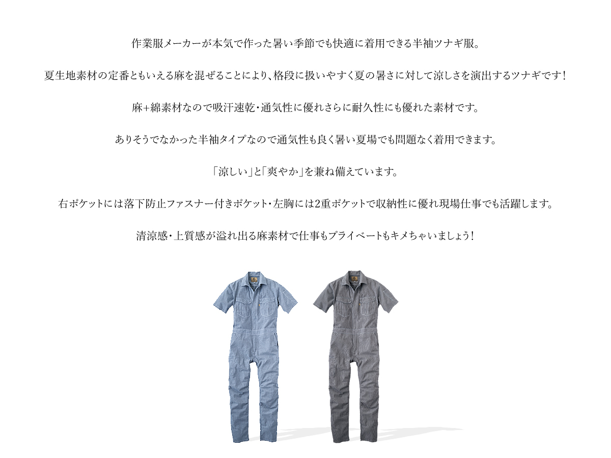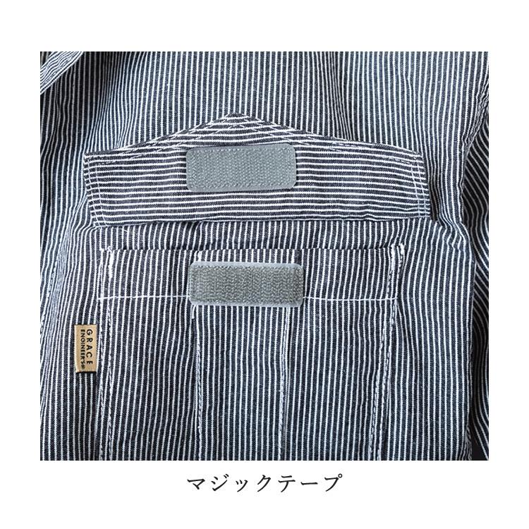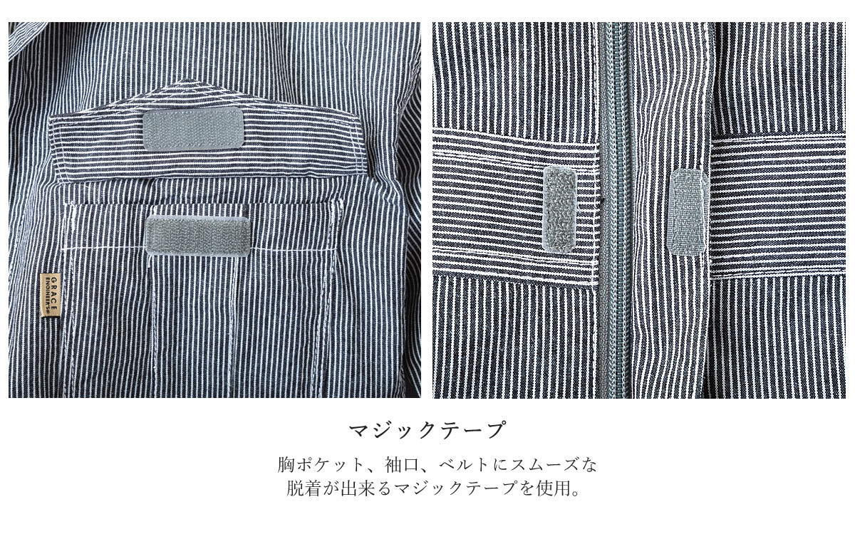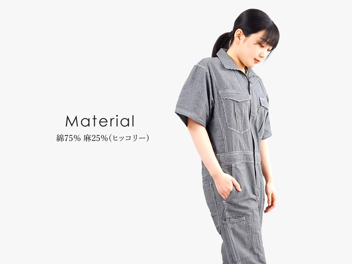 ツナギ メンズ レディース 半袖 つなぎ 作業服 春夏用 ヒッコリー 綿麻 グレースエンジニアーズ 男性 女性 GE585 (取り寄せ商品)