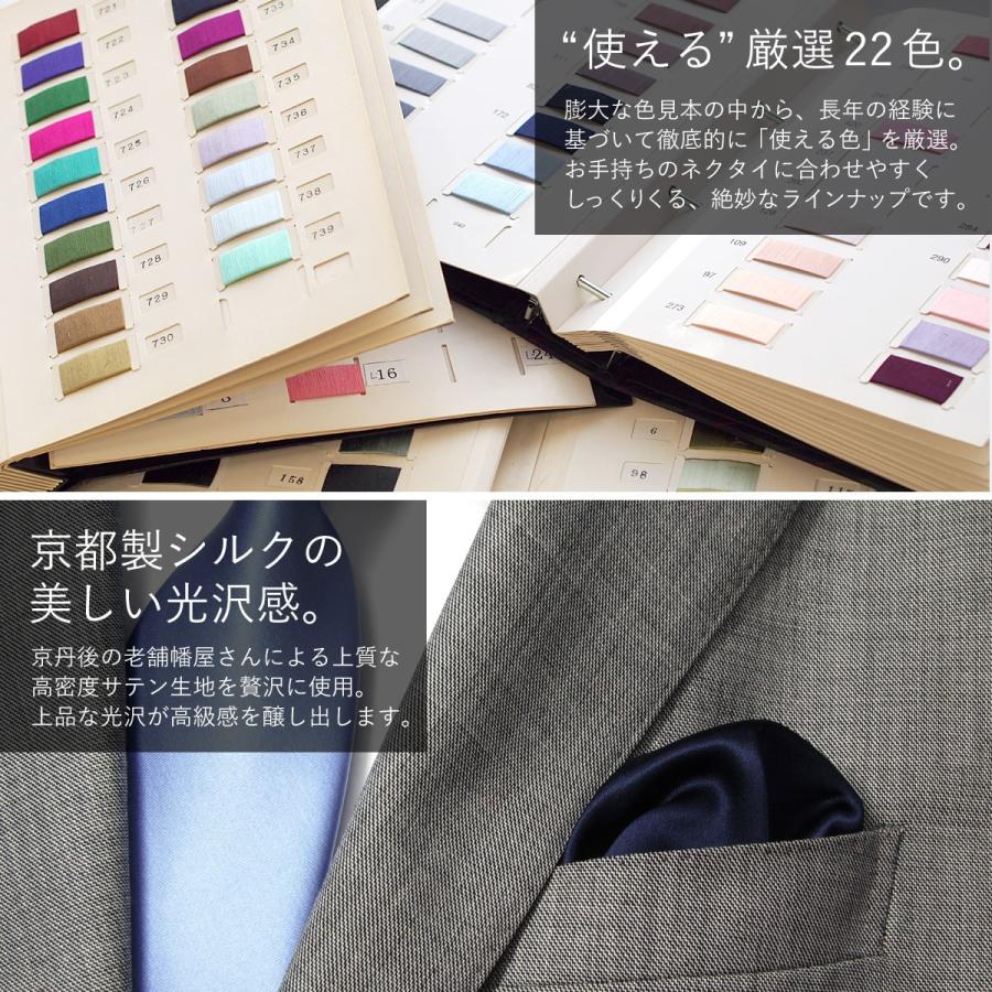 【ネコポス可】京丹後の老舗幡屋さんの上質なシルク生地で作った、サテン無地ポケットチーフです。