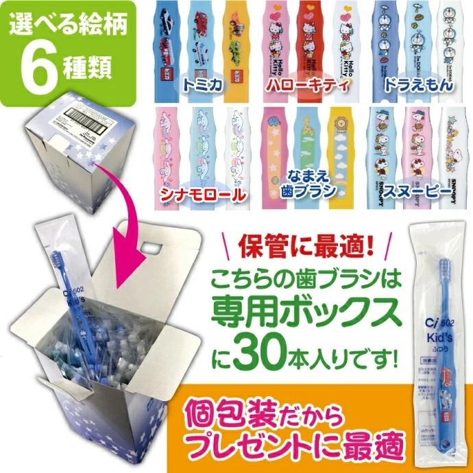 子供用歯ブラシ キャラクター 歯ブラシ Ci 502/503 30本 トミカ・キティ・ドラえもん・シナモロール・なまえ・スヌーピー