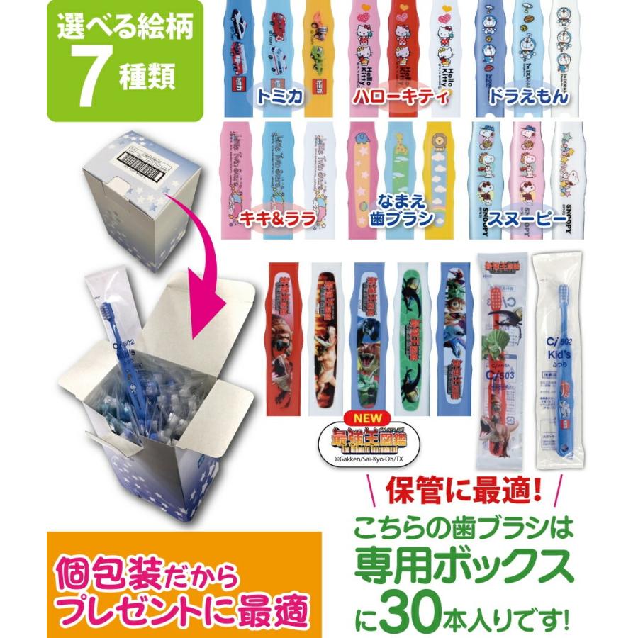 子供用歯ブラシ キャラクター 歯ブラシ Ci 502/503 30本 トミカ・キティ・ドラえもん・シナモロール・なまえ・スヌーピー・最強王図鑑