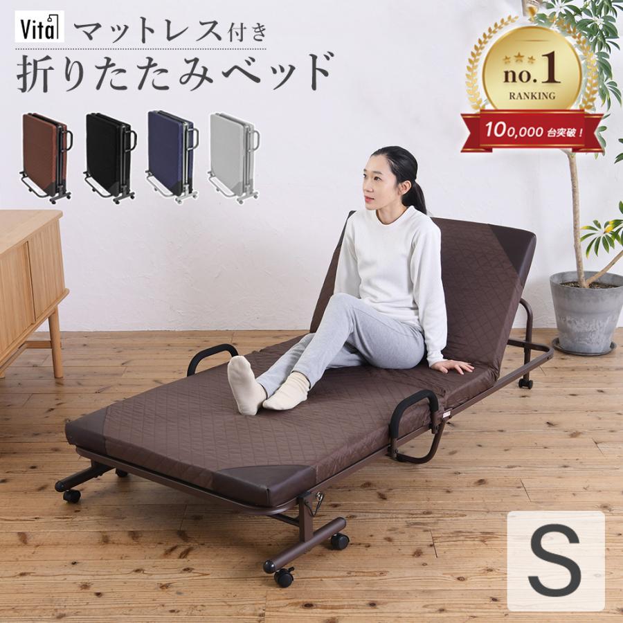 マットレスが付いた折りたたみベッドで、14段階のリクライニング機能を備え、快適な寝心地を提供します。軽量でコンパクトな設計により、簡単に移動や収納が可能です。キャスター付きで移動もスムーズ。組立も簡単で、ほぼ完成品となっており、女性でも気軽に組立可能です。一人暮らしや単身赴任、来客用として最適です。