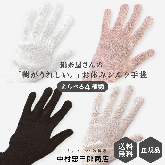 京都西陣の絹糸屋さんのシルク手袋 おやすみ手袋 選べる4色 ホワイト ピンク ベージュ ブラック シルク 手袋 薄手 美肌 シルク100% ハンドケア 保湿