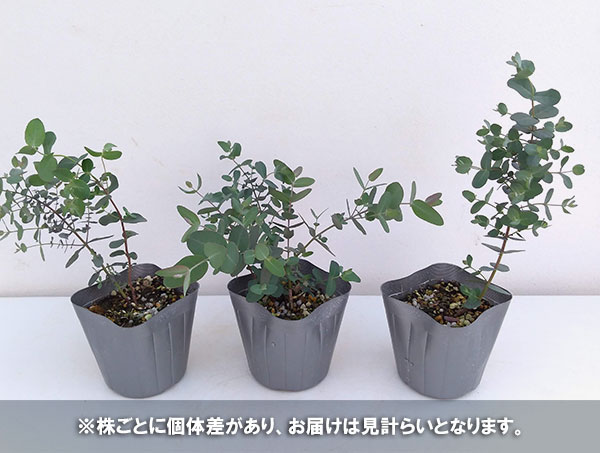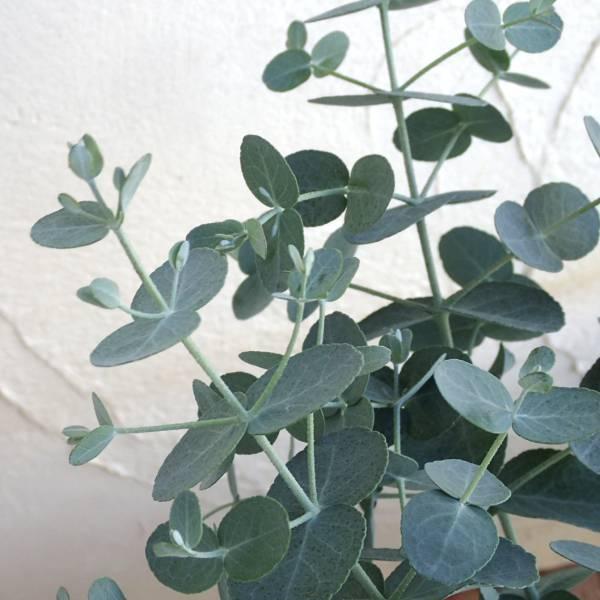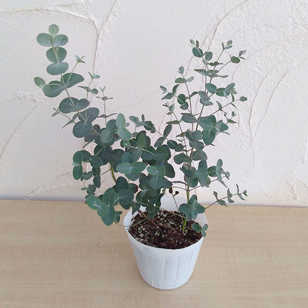 ユーカリは樹高4〜5m以上に成長するとどの品種も葉の形が変わり、細長い葉となります。枝を頻繁に剪定して樹形を抑えると、幼苗のうちの葉形を保つことができます。