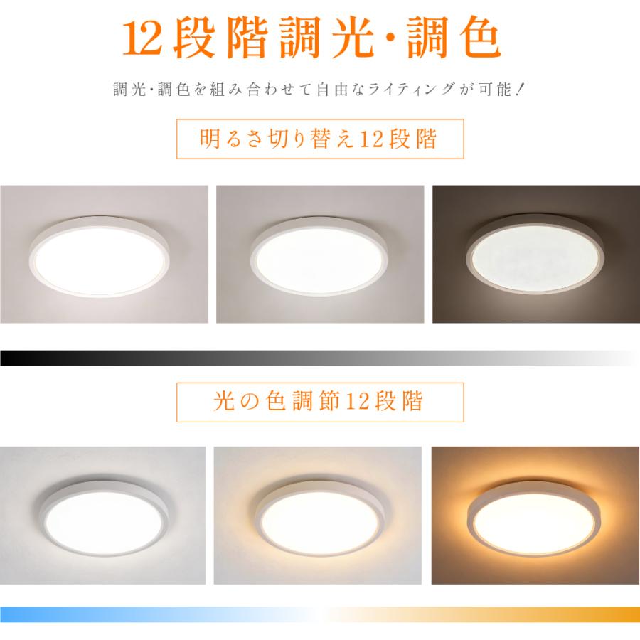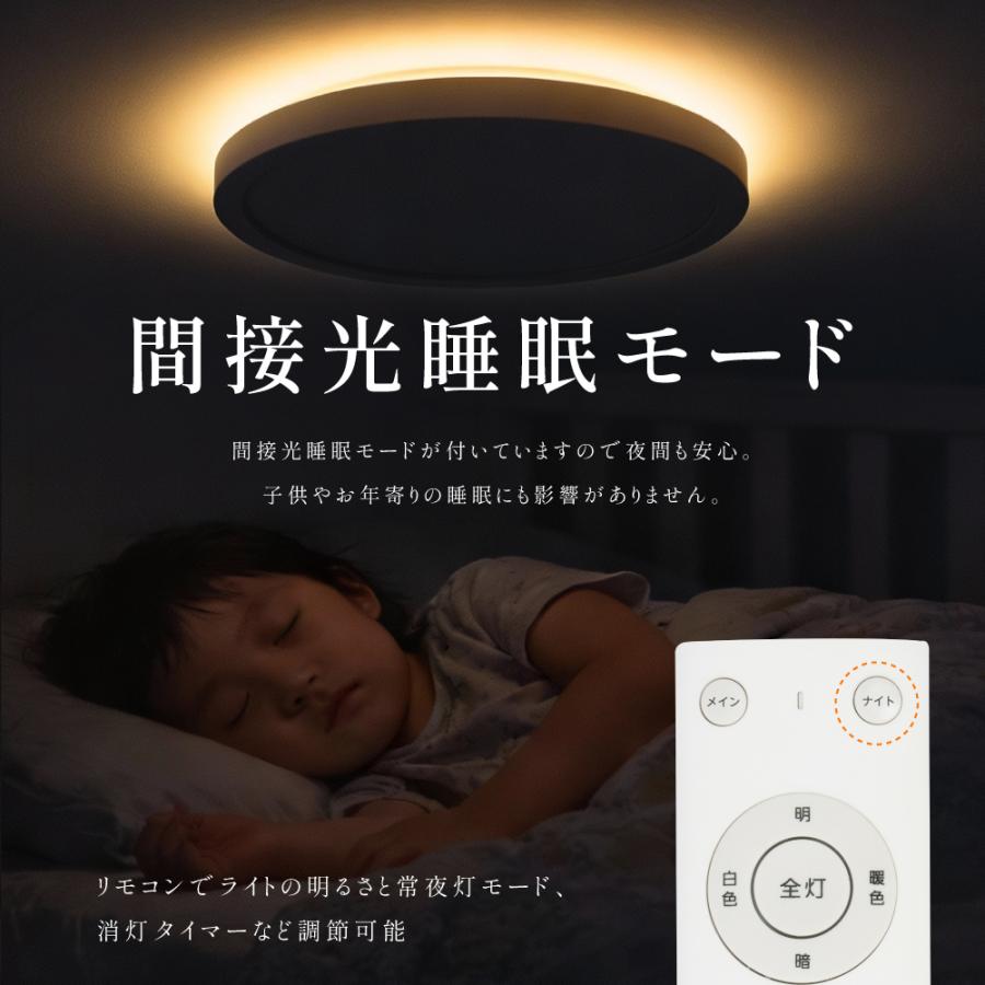 【12段階調光・調色】12段階の調光・調色は自由なライティングが可能です。裏面発光により浮遊感のある間接照明の上品な印象を与えます。リモコンで光の色と明るさを変えられるから、暮らしのシーンやお部屋に合わせて手軽にあかりの切り替えが出来ます。【便利な機能】目に優しい常夜灯モードが 付いていますので夜間も安心。 子供やお年寄りの睡眠にも 影響がありません。ボタンを押すだけで簡単にお休みタイマーがセットできます。 10分後/30分後/1時間後に自動的に消灯します。