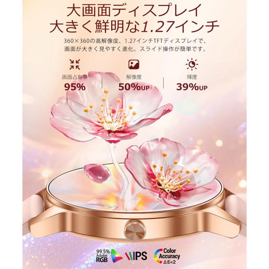 | 【Bluetooth通話・音声アシスタント】 Bluetooth5.4搭載の該当スマートウォッチは安定性が飛躍的に向上され、スピーカー&高性能マイクが内蔵され、 携帯電話を出さなくても、通話することができます。携帯電話に着信が来た時に、スマートウォッチは振動しながら音でお知らせします。 スマートウォッチの画面に相手の名前または電話番号が表示します。着信に応答または拒否することができます。更に電話をかけたり、通話履歴を表示したりすることができます。 スマホとペアリング完了後スマホを出さなくても、スマートウォッチの音声アシスタント画面でSiriを呼び出し、より便利に! スマートウォッチ内ペアリングしている携帯にある曲を再生・一時停止、音量調整等が操作ができます。 ※ご注意:通話機能、音声アシスタント機能はスマートウォッチ本体のBluetoothを接続する必要がございます。 【毎日の運動量を把握・114種類スポーツモード】 心拍計、活動量計、歩数計、座りがちの自動注意、睡眠モニター、SMS通知、電話の着信通知、アラーム、遠隔カメラ撮影、タッチ操作、腕回転で点灯、データ同期、データ分析。 時計機能はもちろん、iPhoneやAndroidなどスマホとBluetoothで接続すれば、心拍数、走行距離、カロリー消費、睡眠モニター など日々の様々な活動量の計測が可能です。 さらに、マートウォッチ本体にウォキング、ランニング、自転車、バドミントン、サッカーなどのスポーツモードがあり、 体の状況により運動目標を設定してしっかり健康管理を実現できます。 ※ご注意:本製品は日常の健康管理及び運動管理の目的として使用する機器で、提供されたデータや情報はあくまで参考用です。医療行為には使用しないでください。 【1.27インチ大画面・長時間待機】 1.27インチのカラースクリーン、360*360解像度のディスプレイを搭載し、文字がもっと明らかになり、強い日差し下にも見やいです。 300mAh超大容量バッテリーを搭載され、約2-3時間のフルー充電で5-7日間も持ちます。頻繁に充電する手間が省けます。 ※ご注意:使用頻度によりバッテリーの消耗が早くなく場合があります。 【150+種類スタイル文字盤・驚異のIP68防水防塵】 150+種類のメインインタフェイス画面が用意されて、好きなUI画面が設定できます。 また好みの写真も設定可能、毎日のお気持ちによって、文字盤スタイルを取り替えましょう。 IP68防水機能を備わっているので、手洗い、海辺や雨の日にもスマートウォッチを付けたまま利用できます。 ※ご注意:汗、雨、水しぶきに対応しています。ただし、デバイスは水泳時またはお風呂、サウナ、温泉などの高温環境では使用不可です。 【便利な機能沢山・高精度な専用チップ】 カメラ制御、天気予報、電卓機能、ストップウォッチ、生理周期管理などうれしいな機能盛りたくさんです。 スマートウォッチに内蔵している専用センサーを通して、トレーニング効果を最大化して、健康を最適化できます。基礎代謝や運動消費カロリーを正確に記録し、体重管理を支援します。 簡単に健康管理ができ、日常生活をより豊かにしてくれます。 【1年の保証期間】 保証期間を「1年間」としていますので、安心してご利用いただけます。 【ご注意】 ※充電ケーブルが本体裏面の充電部分にしっかり吸着していることを確認してください。 ※充電は子供の手が届かない平坦で安定した場所で行ってください。 ※日本のキャリアメールには非対応です。 ※初めてアプリをダンロードする時は、ソフトウェアの権限を取得することに同意してください。同意しないで使用しますと一部の機能が使えない場合がございます。 ※ウォッチとのBluetooth接続はアプリから実行する必要があります。スマホのBluetooth管理画面から直接接続させてもウォッチとアプリが連携されませんので、ご注意ください。 ※ご使用中に何かあったら、スマートウィッチのバージョンを更新してからご利用ください。 ※ホストを強く叩かないでください。 ※ベンゼンやシンナーなどの化学薬品に触れさせないでください。 ※強い磁場に近づけないでください。 ※直射日光・暖房器具 など熱が直接あたる場所や、高温多湿な場所での使用は避けてください。 ※自分で分解、修理、改造しないでください。 ※入浴中は着用しないでください。温度45°を超える場所では使用できません。 ※お子様が誤って飲み込んでしまう危険性がありますので、必ずお子様の手の届かないところで保管してください。 Ewinブランドの商品は、多くのお客様にご愛用頂いております。ヨドバシ、ビックカメラにも販売して頂いている信頼のブランドです。ご安心してご利用いただけます。 |