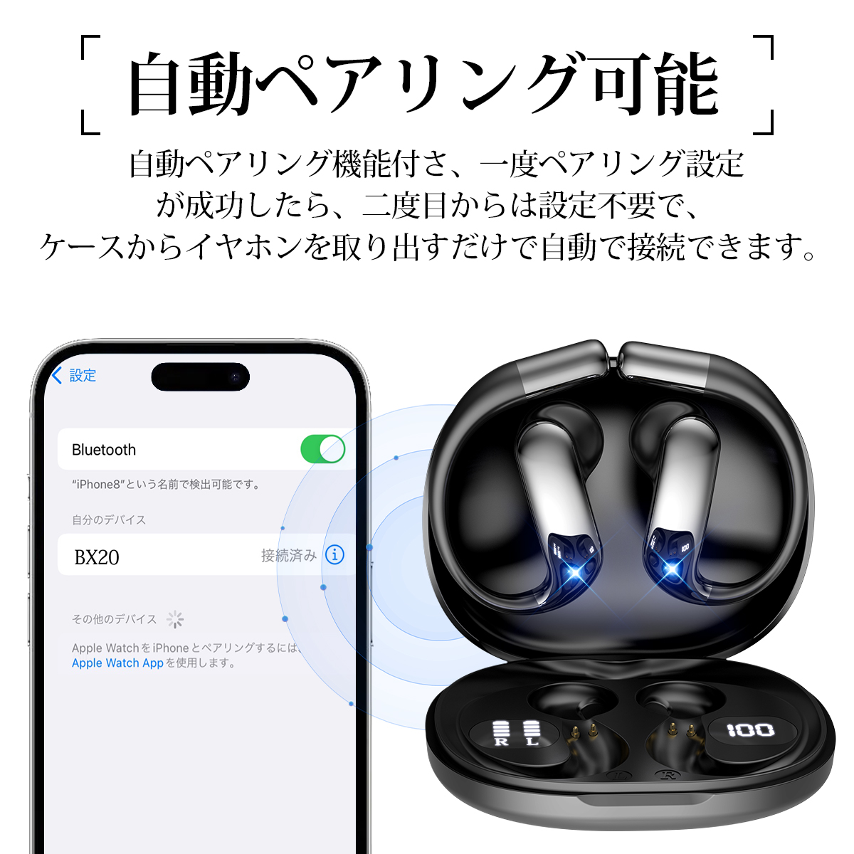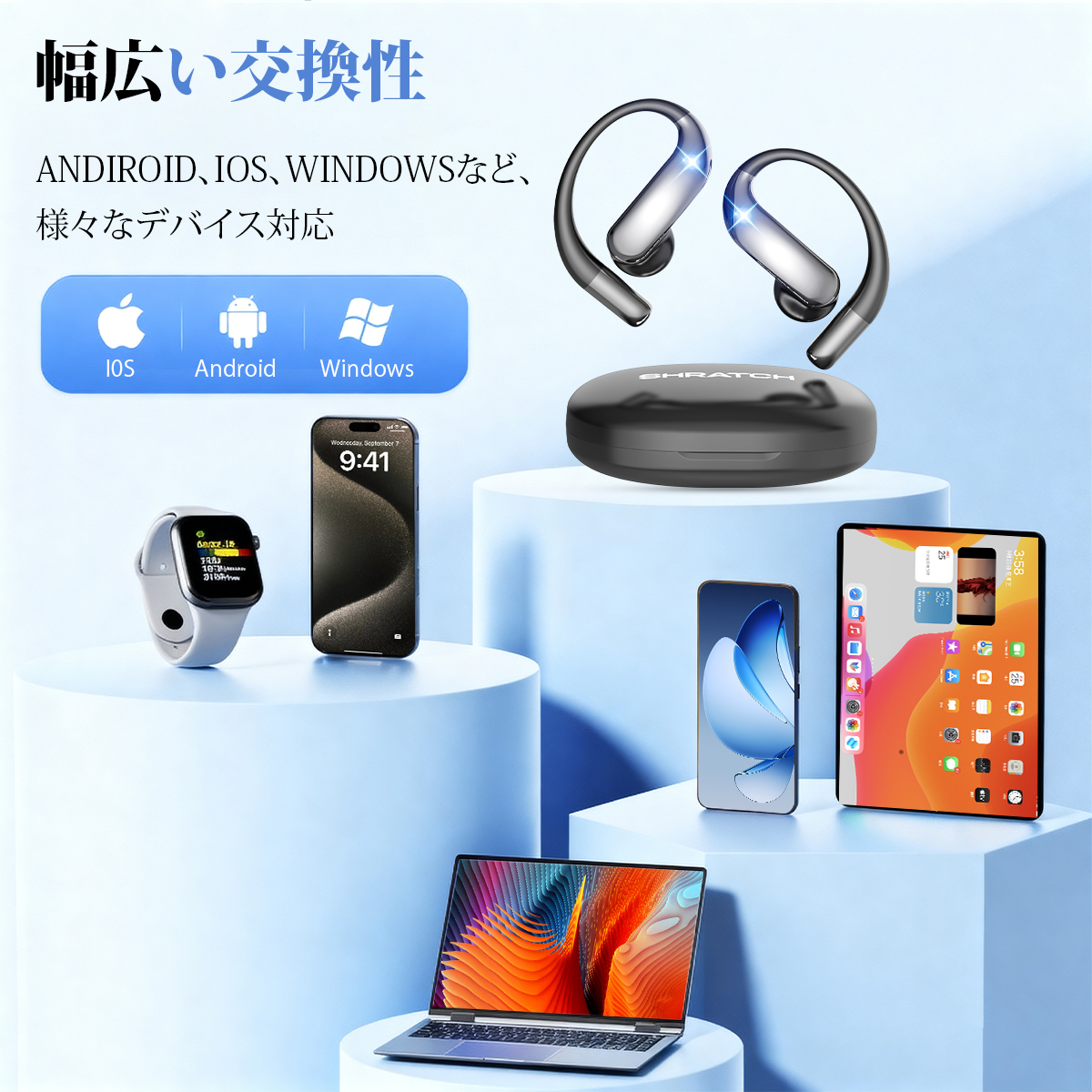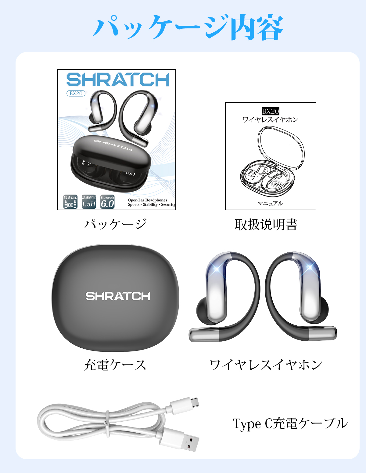 ワイヤレスイヤホン 骨伝導 イヤホン bluetoothイヤホン SHRATCH オープンイヤー型 耳を塞がない 耳掛け式 イヤフォン 残量表示 音漏れ抑制 急速充電