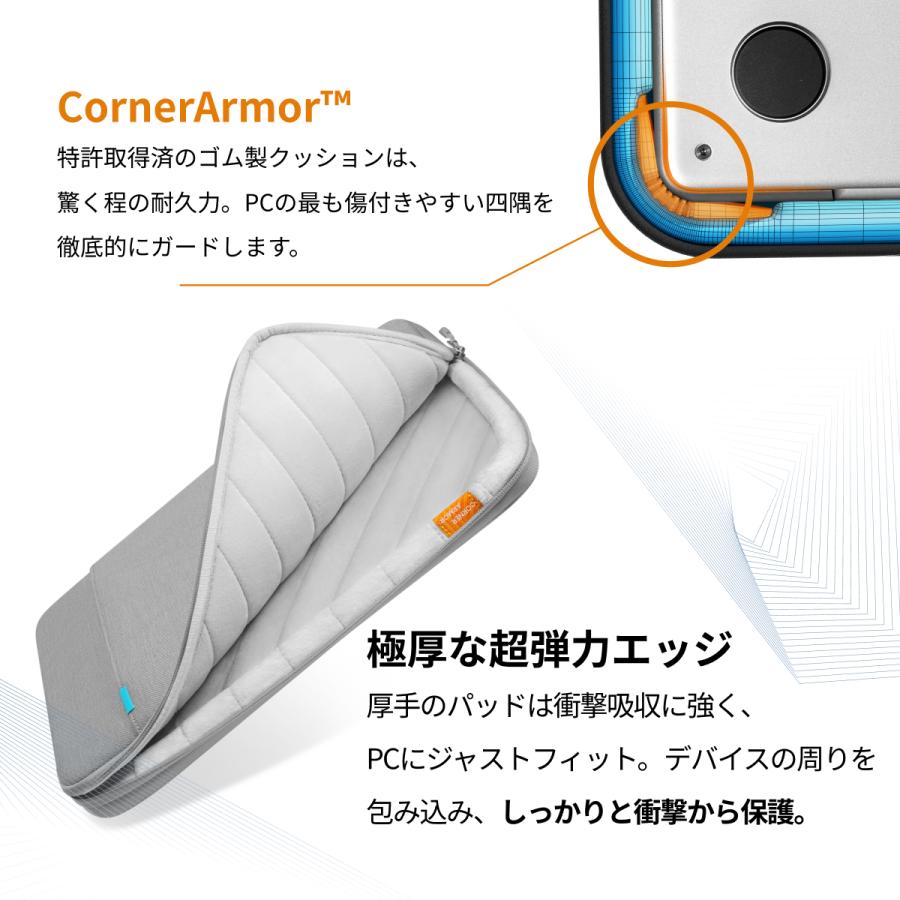 | 商品説明 | 【アメリカ軍用規格のCornerArmor保護】 全ての4隅にある、特許取得のゴム製「CornerArmor」クッション部品が、超強耐衝撃力でノートパソコンを落下などのぶつかることから全方面保護します。この新世代「CornerArmor」が軍用落下テスト(規格MIL-STD-810H:2019)をクリアして、クッション性は10倍以上向上します。 【信頼できる360° 全面保護】 裏側に厚くふわふわとした生地の採用に加え、多数な丸形状クッションが衝撃を吸収するように設計されています。ジッパー周りの360度保護パッドにより、ノートPCがジッパーに当てて、傷つけることを防止。 【便利なフロントポケット】 フロントポケットはKindle、アダプター、ケーブル、バウス、ハブ、USBメモリ、イヤホンなどのPC周辺小物を一気に収納できます。この軽量でコンパクトなラップトップ保護ケースは他のショルダーバッグ、バックパックに簡単に収納できます。 【品質へのこだわり】 安心のYKK製両開きファスナーを使用し、耐用性に優れて、開閉もよりスムーズで使いやすいです。撥水加工された表地を採用しております。 【環境保護の取組み】 環境保護の企業責任を役たす為に、このMacBook用ケースの表地は回収されたPETボトルなどのプラスチックをリサイクルしてから作った再生素材を使用。ノートパソコンの保護ソリューションをご提供致すことと共に、プラスチックの再生利用により環境汚染の減少に取り組んでおります。 |