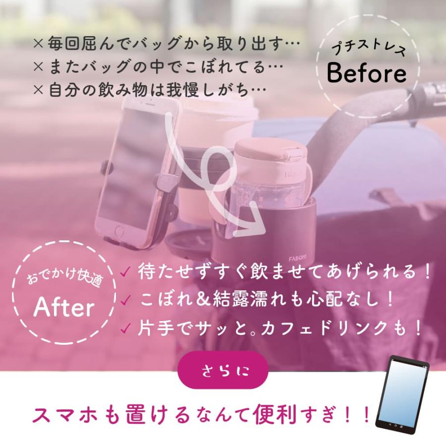 お散歩や買い物、テーマパークなどベビーカーでのお出かけ時に、両手をふさがず持ち歩き&サッと水分補給できる便利なアイテムです。