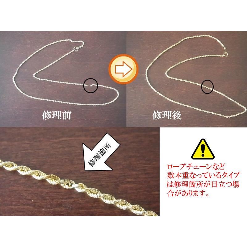 ・チェーンの途中が切れている場合の修理は切れた箇所を溶接等によりつなげる作業になります。溶接箇所以外のネックレス