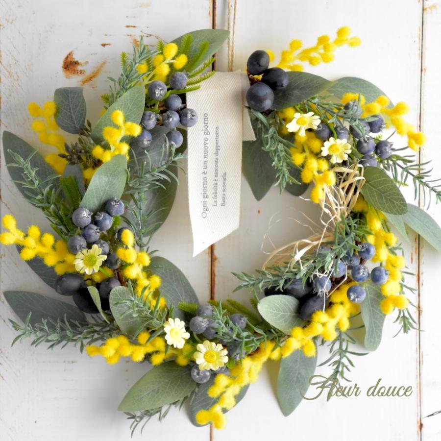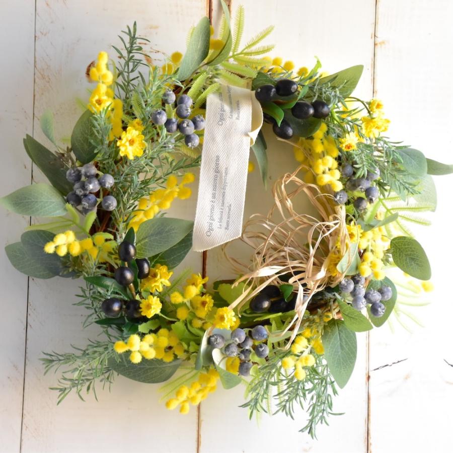 リース 玄関 ミモザ 春 オリーブ ミモザのリース 30cm ギフト 送料込