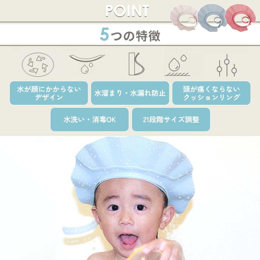 ・水が後ろから流れるので顔・耳が濡れないシャンプーハット