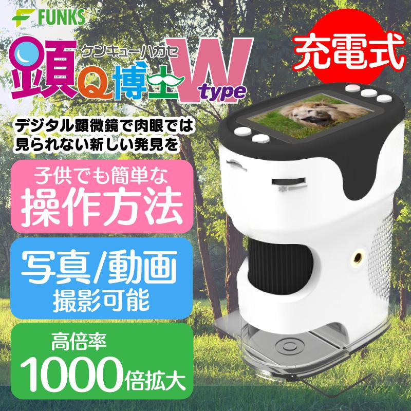 FUNKS 顕Q博士 顕微鏡 子供 ハンディ 小学生 子供用 デジタル顕微鏡 充電式 マイクロスコープ 電子顕微鏡 ケンキュー博士 研究博士 けんきゅうはかせ typeW