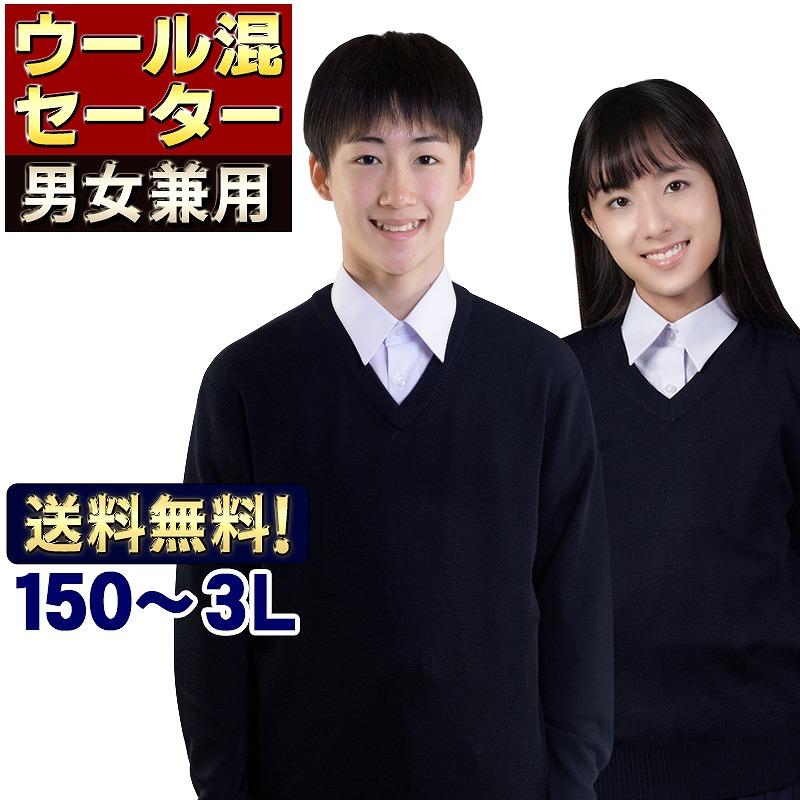スクールセーター 男女兼用 Vネック セーター 制服 ウール混 ネイビー 通学用 学生服 ニット ユニセックス メール便発送 150 S M L LL 3L