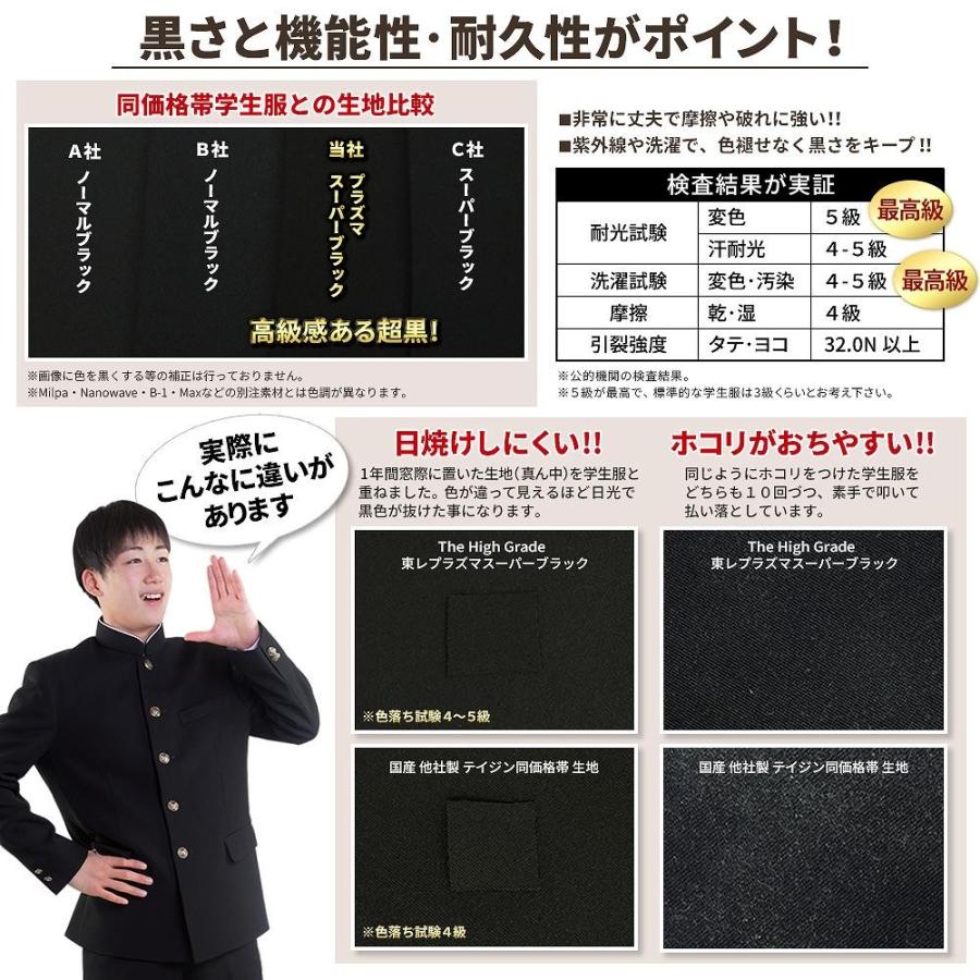 学ラン 学生服 上下 日本製 全国標準型 超黒 ハイグレード 丈夫でホコリがつきにくい 東レ正式許諾品 A体 B体 ラウンド襟 ワンタック併売 男子 裾上げテープ