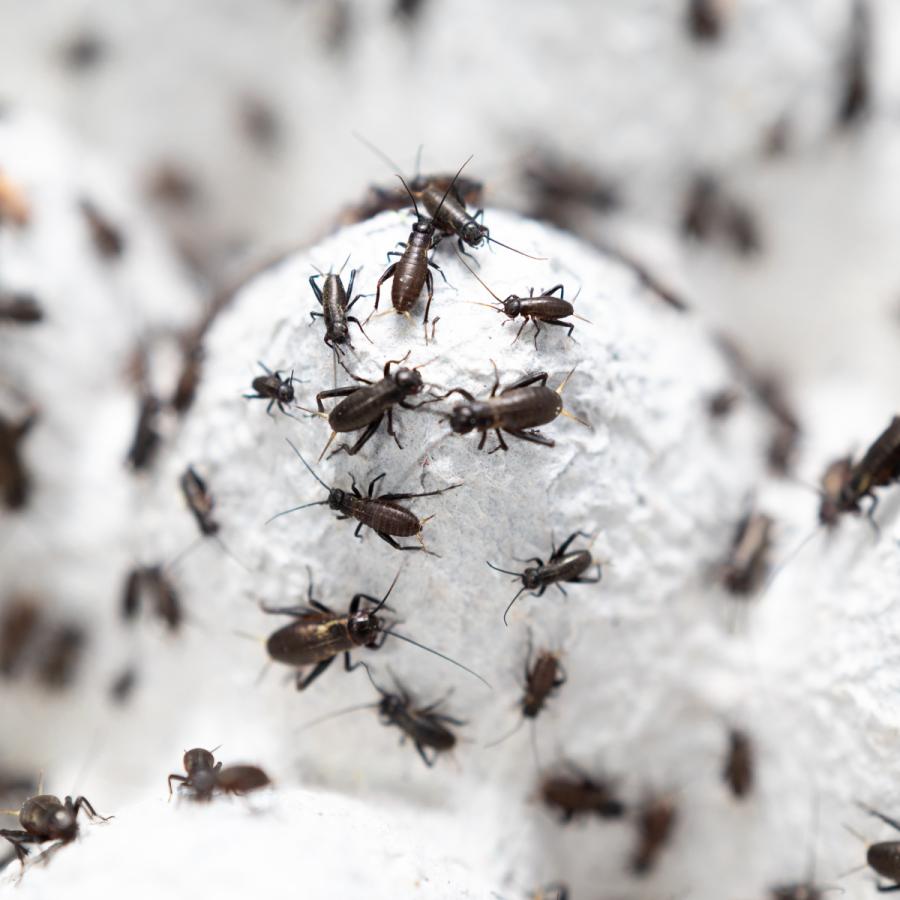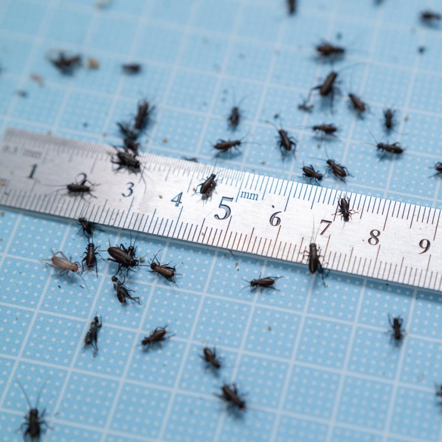 爬虫類や両生類、また肉食魚などの生き餌に主流のコオロギです。飼育環境は湿度60%前後、25-30度の温度での管理が望ましいです。また餌切れ、水切れに弱く常に野菜やコオロギフードなどで餌水を摂取できる環境を整え、定期的な掃除をすることが長生きに繋がります。温度が低いと成長は遅れ、20度以下では成虫になる前に全滅の可能性もあります。20度-24度で飼育すると比較的成長スピードは遅く、適温(25-30度)に比べると餌用としてサイズをキープしやすいですが、死にやすくもなります。隠れ家がないと全滅します。また生き物のためより良い環境でも共食いや死んでしまう個体は発生します。