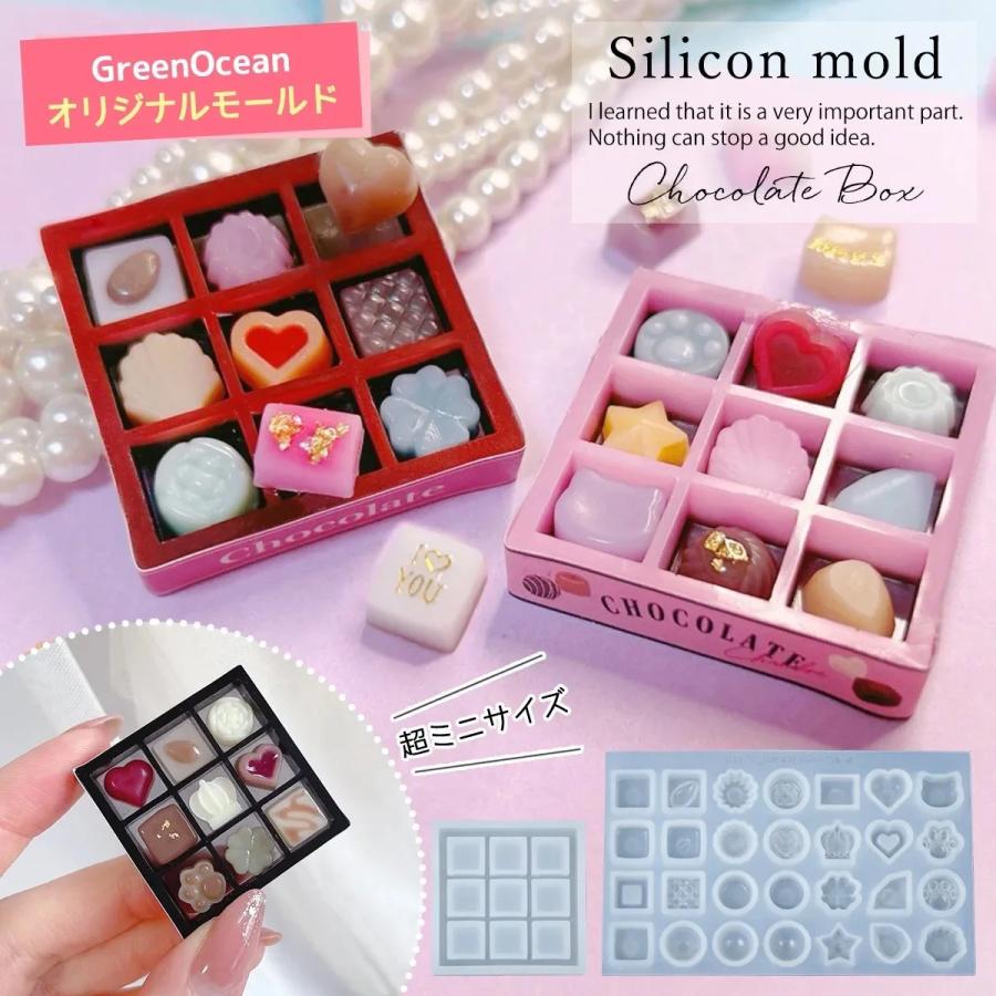 ピアスにしても可愛いミニミニサイズの一粒チョコがたっぷり28種類も作れる立体3Dシリコンモールドと、とっておきの9粒を入れられる専用チョコレートボックスが作れるモールド、作品をもっと可愛くアレンジできちゃうラベル紙がセットになったレジンキットだよ^^