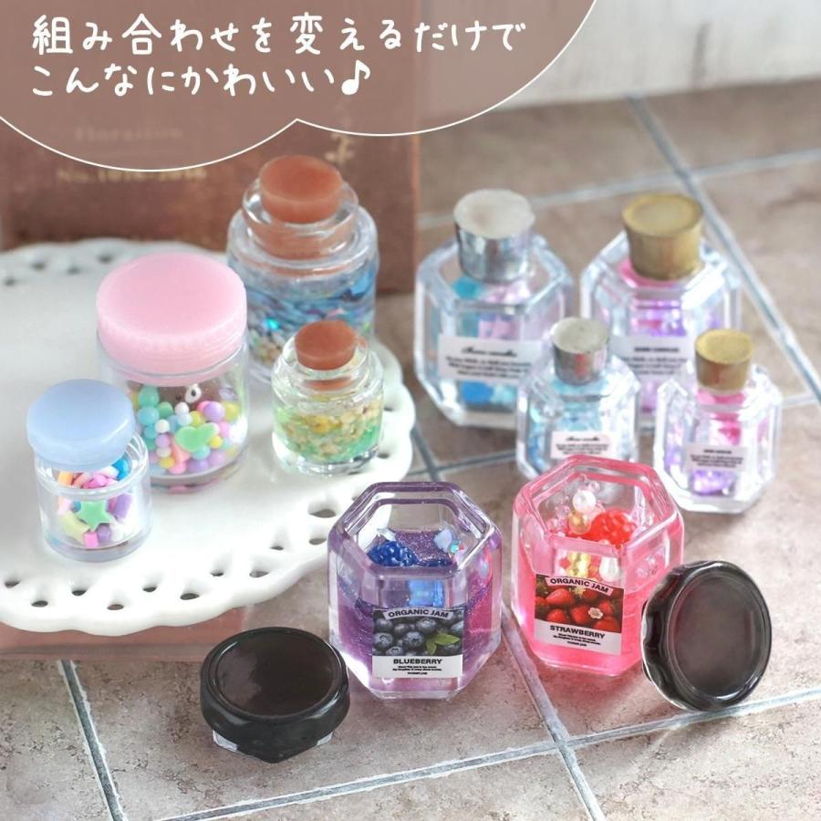 専用のシールラベル(型番:28267-G)を貼れば、クオリティーが爆上がり♪パーツを入れてカシャカシャさせたり、液体も入れられる、リアルな小瓶が完成するよ!