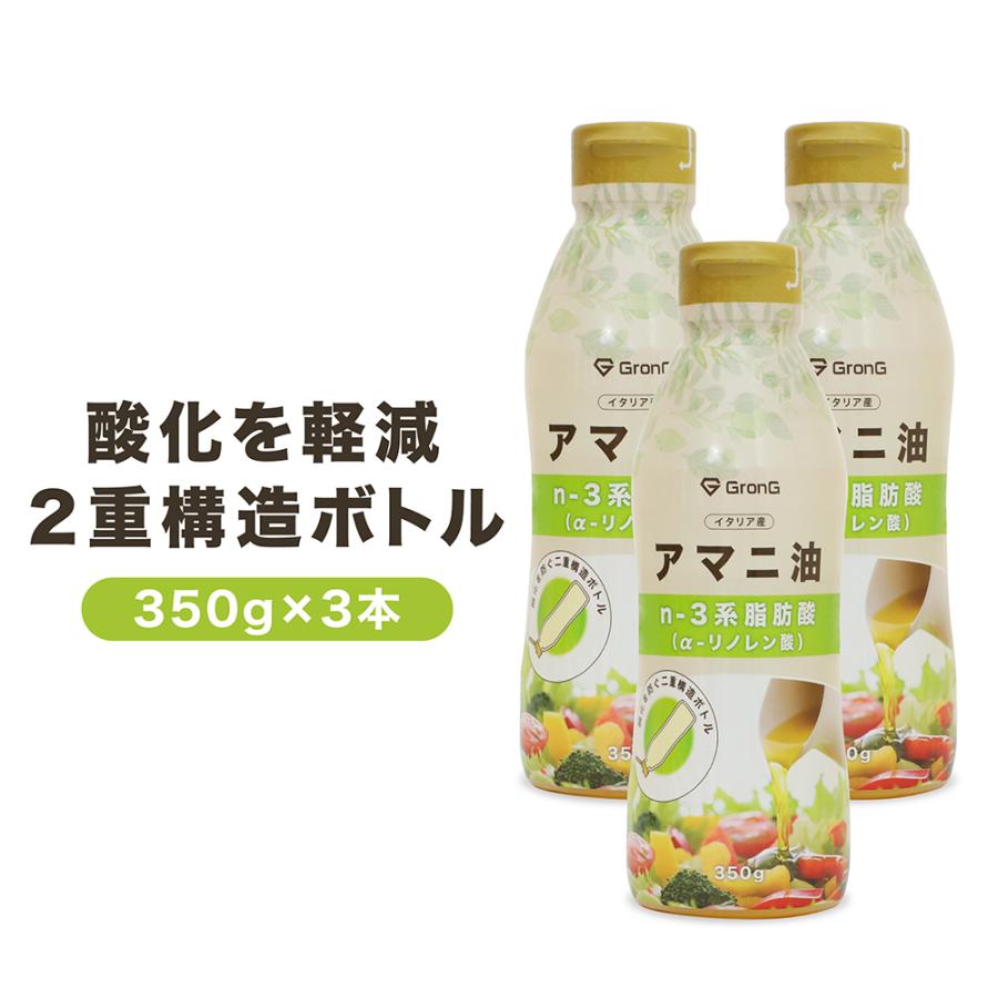 【25日に使える300円OFFクーポン配布】グロング アマニ油 コールドプレス製法 二重構造ボトル 350g 3本セット GronG 爆買
