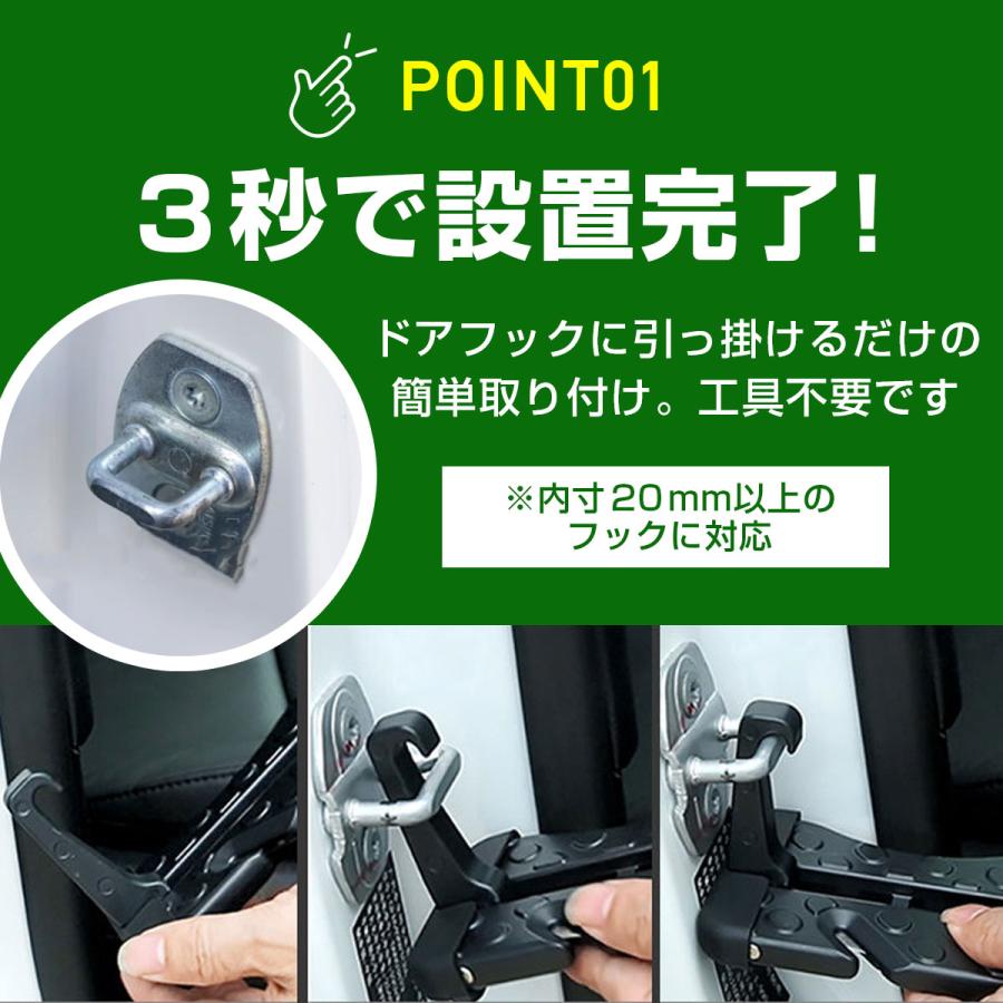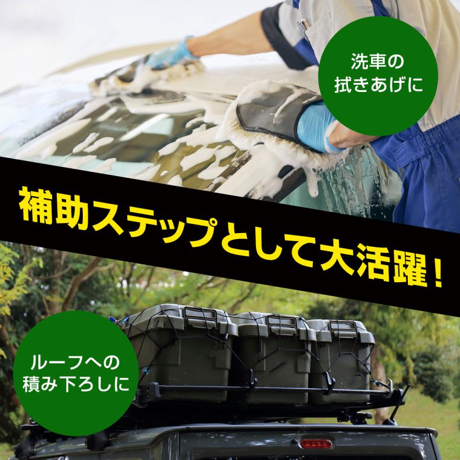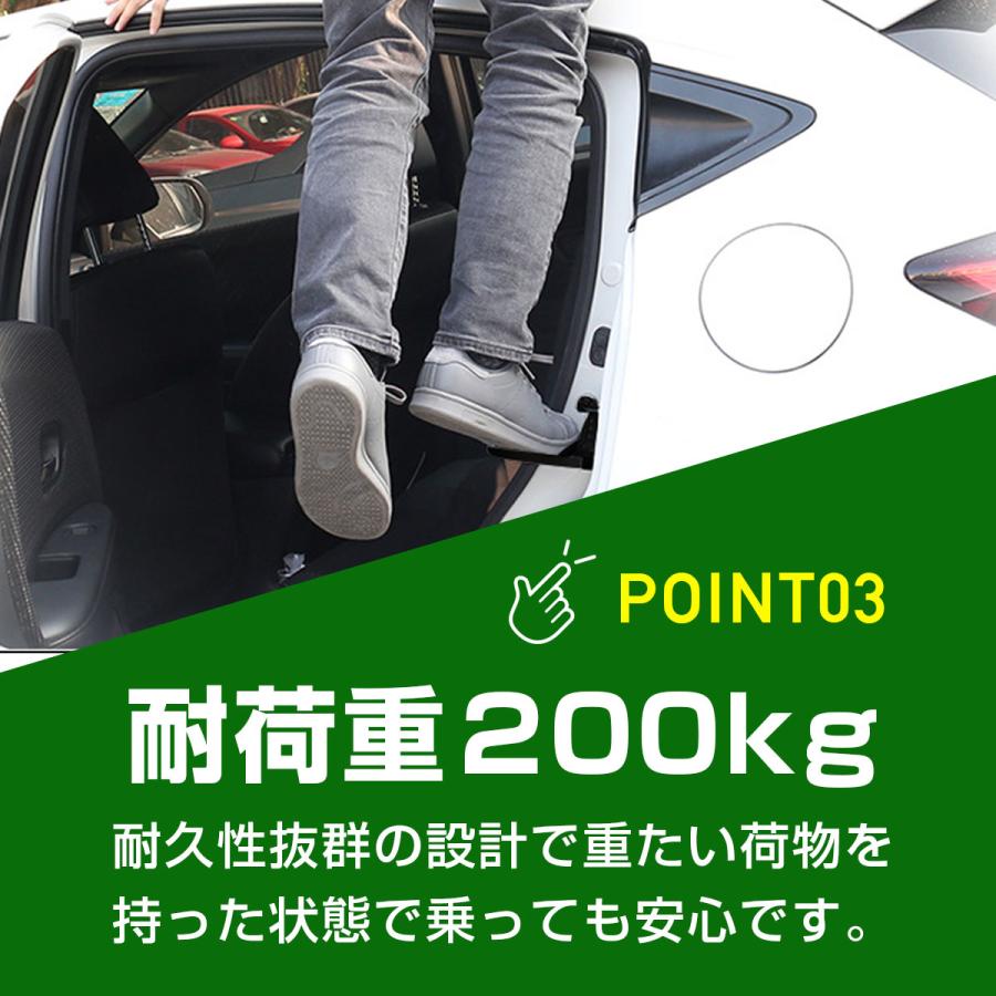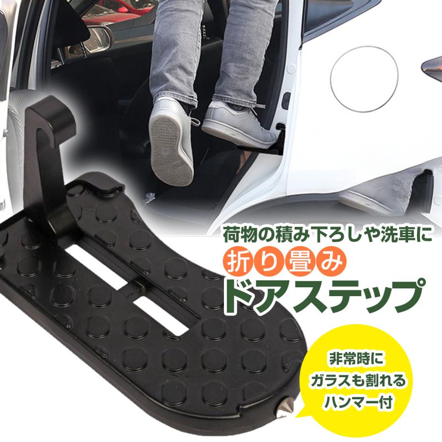 車のルーフステップや洗車、荷卸し作業などがこれ一つで解決!便利な折りたたみ式の車用昇降ペダルが登場しました。足掛けとしても使用でき、さらに安全ハンマーとしても機能する優れたカー用品です。多機能性: 昇降ペダル、足掛け、ひっかけ、安全ハンマーとして使用可能クライミングサポート: キャリアへの荷卸しやルーフステップに最適洗車補助: 車の屋根まで届くように設計され、洗車作業をサポート安全設計: 強固な材料で作られ、安全に使用できるようになっていますコンパクト: 折りたたみ式で収納が簡単、車内での持ち運びに便利このドアステップ昇降ペダルは、車の様々な作業をサポートするための必需品です。洗車や荷物の積み下ろし、緊急時の安全対策としても使用できます。コンパクトに折りたためるので、どこへでも持ち運びが可能。車のオーナーであれば、一台は持っていたいアイテムです。サイズ:15.8cm×7.5cm×1.7cm重量:250g素材:アルミ合金耐荷重:200kg色:ブラック