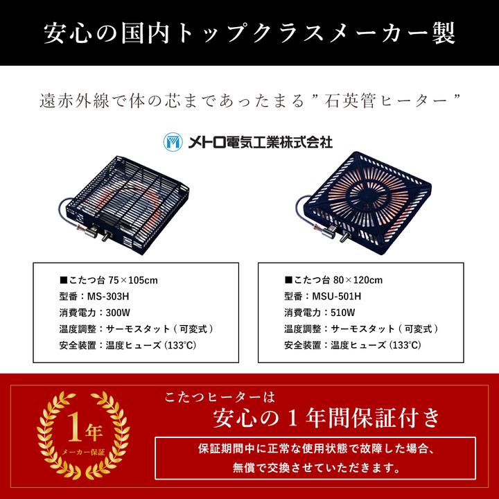 ■こたつヒーターは安心のメーカー1年保証です。