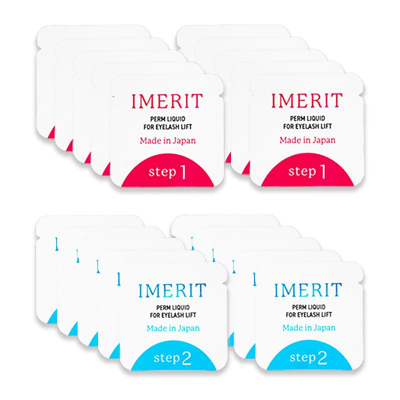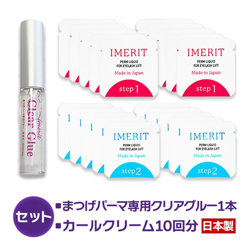 〔IMERIT〕5分でかかる! 日本製 エクステ つけまつ毛用 低刺激パウチパーマクリーム液(10回分) /高粘着クリアグルー セルフまつげパーマ