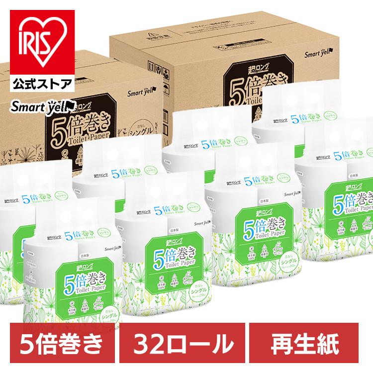 トイレットペーパー シングル 芯なし 5倍巻き 業務用 250m 4ロール 8セット 再生紙 32個 備蓄 まとめ買い 丸富製紙 SY スマートエール