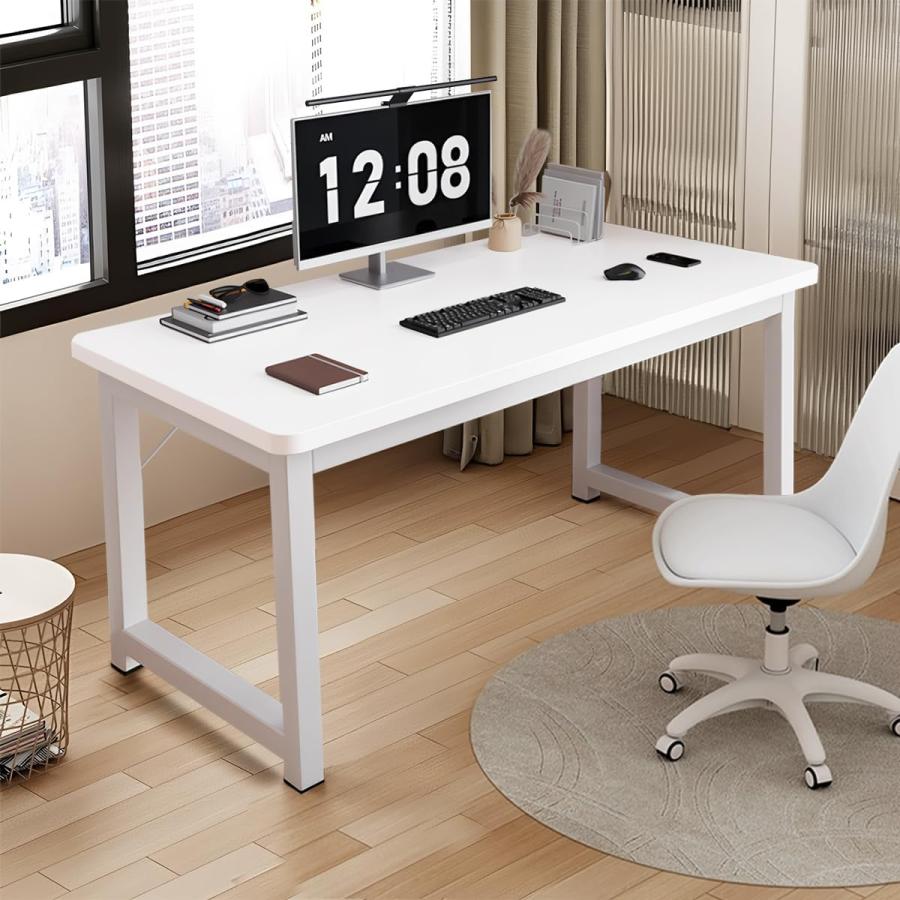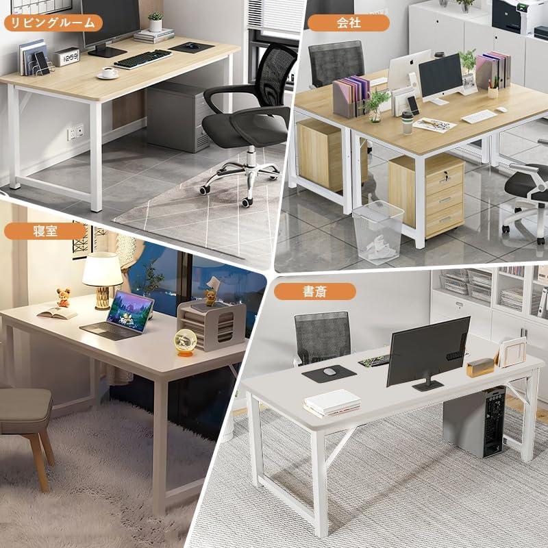 【頑丈安定・メンテナンスが簡単】30ミリメートル太の強化テーブル脚、安定な構造です。また、天板のたわみを防ぐために2本のリーンフォースメントを装備しています。脚の保護パッドがあって、安定で滑らず、フローリングの床にも傷がつきにくいです。頑丈な作りで長期間の使用にも耐えられます。さらに、メンテナンスが簡単で、日常のお手入れも手間がかかりません。オフィスや自宅での作業を快適にサポートするこのデスクは、機能性とデザイン性を兼ね備えたものです。