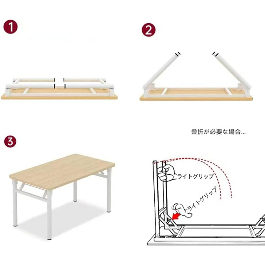 折りたたみデスク テーブル 机 組立不要 100CM 丸い脚 在宅勤務 リモートワーク用 勉強机 家具 在宅勤務 作業台 シンプル 頑丈 アウトドア使用可能