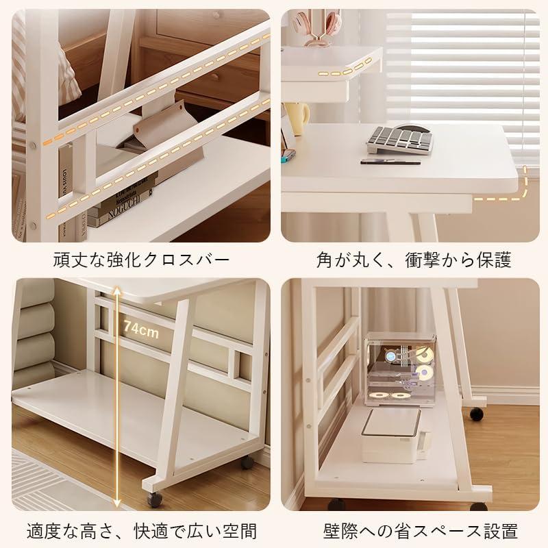【3段収納】テーブルには3段の収納スペースがあります。上段はモニターを昇降させることができ、下段は棚板エリア、広々とした大型デスクトップ、収納スペースを増やし、アクセスしやすくなっています。 本体サイズ:幅約60/80/100cm x 奥行約40/50cm x 高さ約74cm