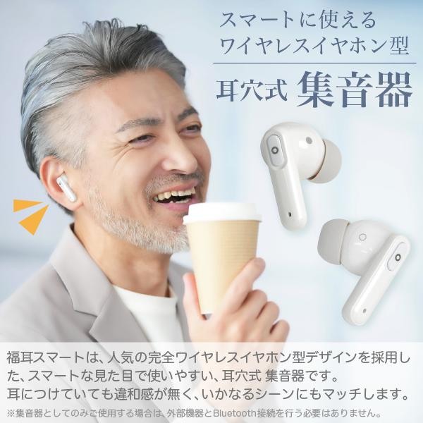 集音器 福耳 smart(ふくみみスマート) USB充電 耳穴式 音がクリアなデジタル音声 Bluetooth5.3 ワイヤレスイヤホンとしても使える ノイズ低減モード搭載