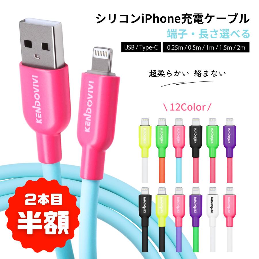 【2点目半額】iPhone 充電ケーブル シリコン 太め 柔らか 絡まない ライトニング タイプC 純正品質 0.25m/0.5m/1m/1.5m/2m 急速充電 typec iphone 17