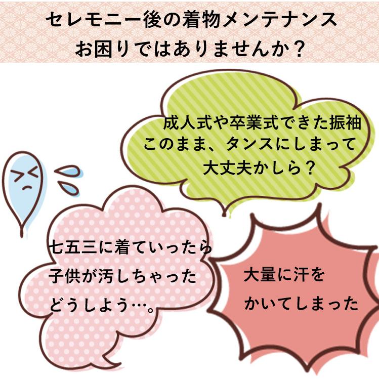 入学式・卒業式・結婚式などのセレモニーで着用された着物を3点セットでクリーニング致します。