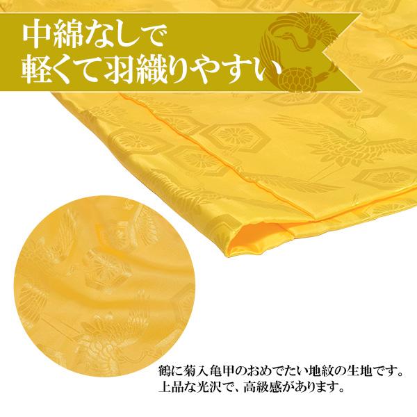 【カラー】鶴に菊入亀甲のおめでたい地紋の生地。色はやわらかみのある明るい黄色