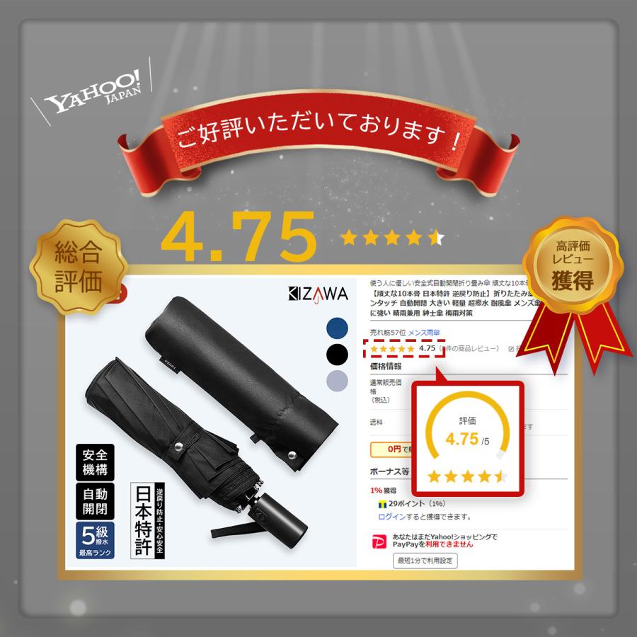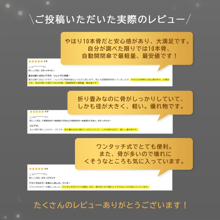 自動開閉、逆戻り防止機能付き、耐風、晴雨兼用、軽量、大きい、超撥水、頑丈な10本骨