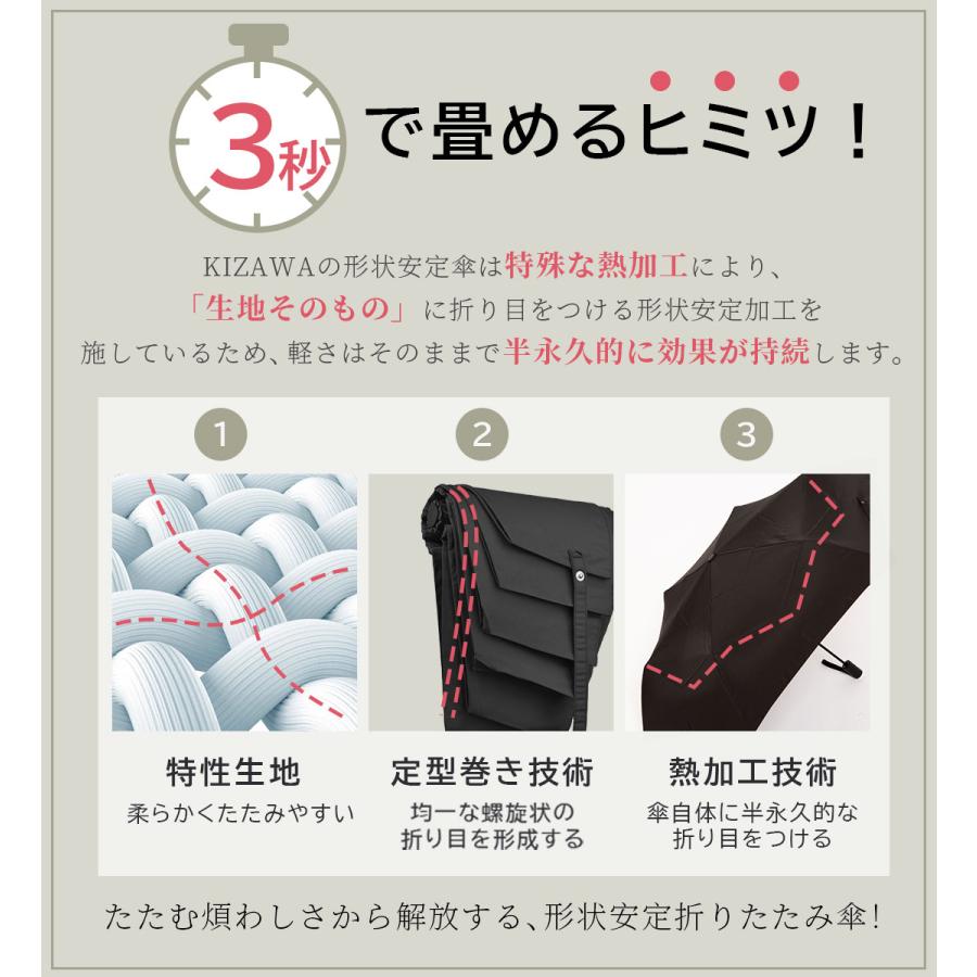 KIZAWA最高水準の折りたたみ雨傘!【3秒で畳める形状安定】【自動開閉】【逆戻り防止】【超撥水】【軽量】あったら嬉しい性能をぎゅっと凝縮した贅沢な一品!プレゼントにもおすすめ!
