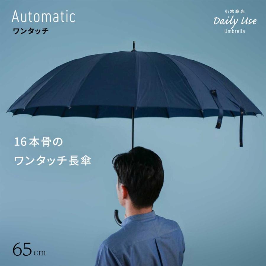 ●ボタン一つで簡単に開く、大きいサイズの長傘です。傘骨が16本あるので風に強いのも特徴です。