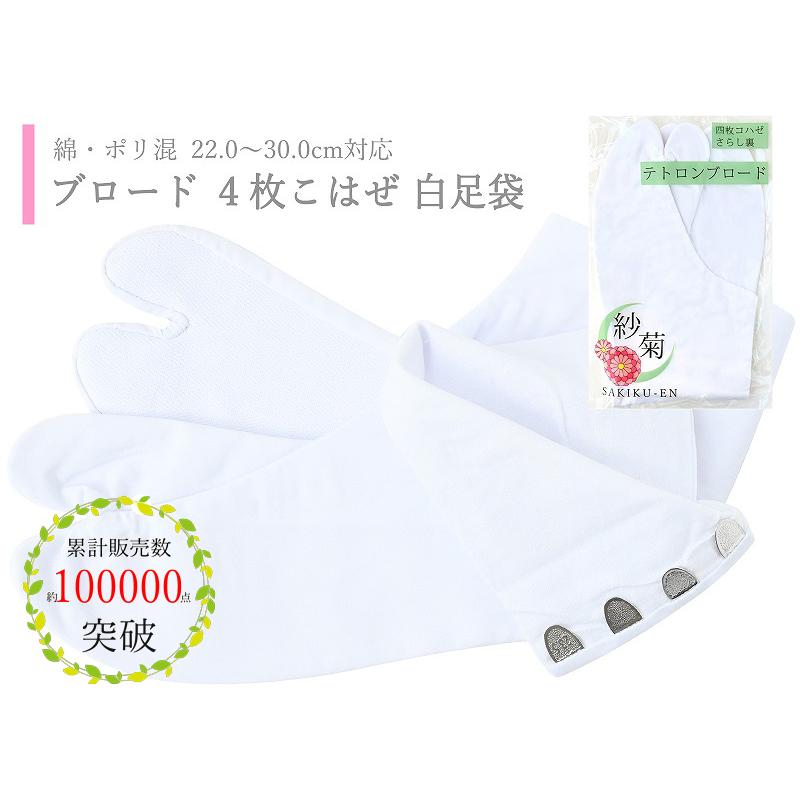 セール 白足袋 4枚こはぜ ブロード足袋 さらし裏 21cm〜30cmまで 1口3点までメール便可