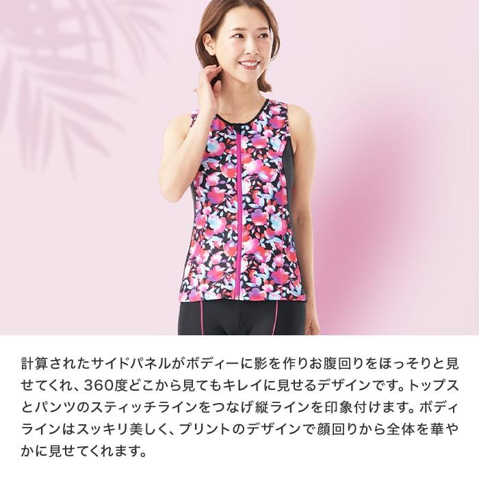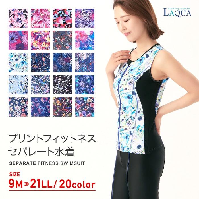 フィットネス水着 プリント 柄 セパレート 水着 ミセス 40代 50代 ママ スイムキャップセット めくれ防止 レディース 競泳水着 大きいサイズ 体型カバー