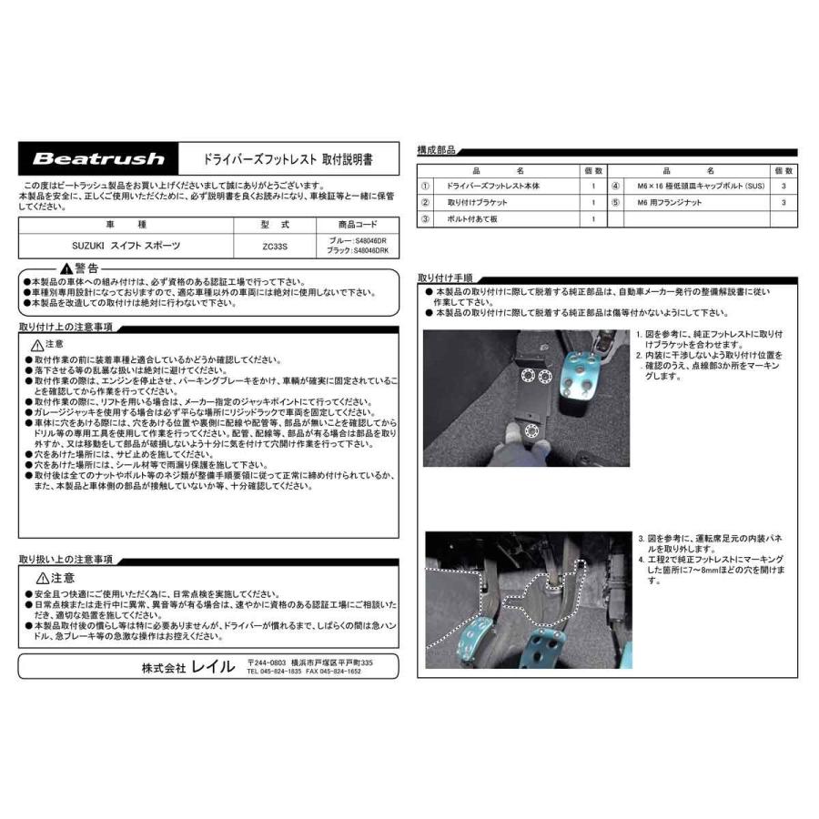 ドライバーフットレスト スズキ スイフトスポーツ ZC33S ※マニュアル、オートマ共通 ビートラッシュ レイル 【S48046DR#】