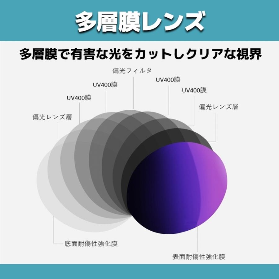 偏光レンズ採用で車の運転時はもちろん釣りやゴルフにもおすすめです。