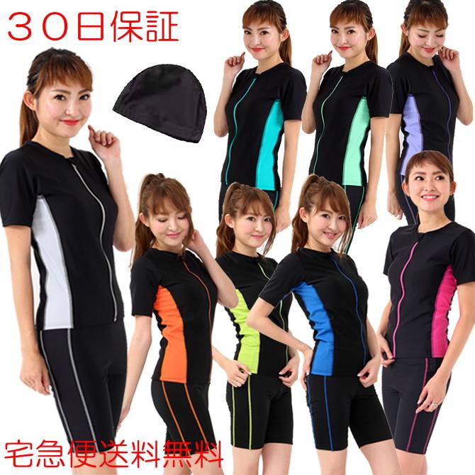 フィットネス水着 レディース セパレート スイムキャップ セット 半袖 大きいサイズ 体型カバー 水着レディース めくれ防止 30代 40代 50代 135