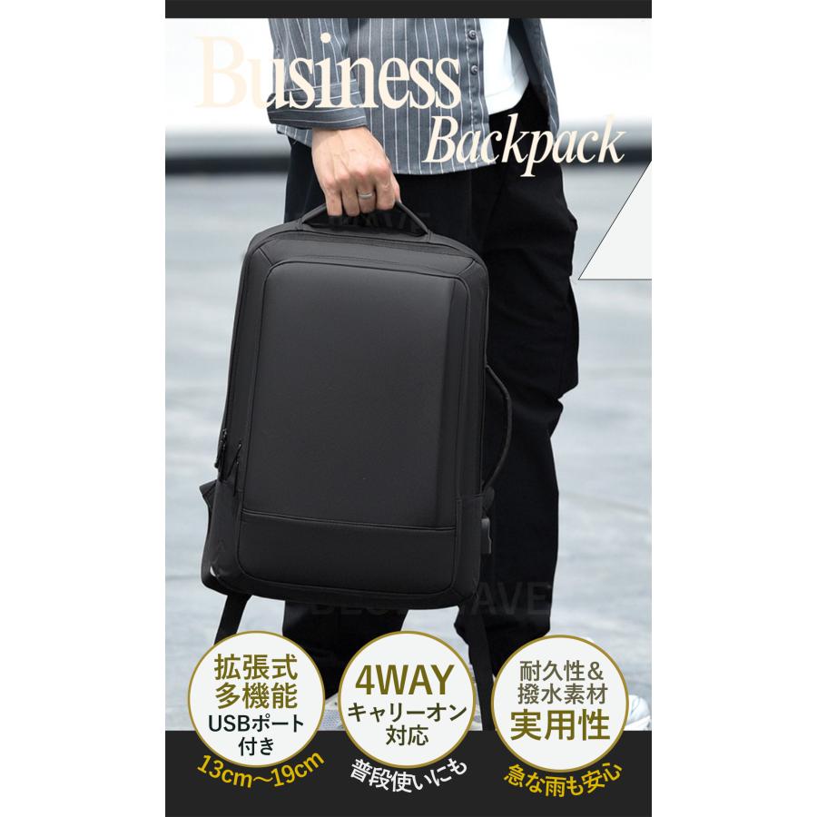 【関連キーワード】ビジネスリュック リュック メンズ リュックサック 大容量 リュック ビジネス リュック リュック ビジネス ビジネスリュック メンズ メンズリュック 通勤 リュック 通勤カバン 通学リュック デイバック バックパック バッグ バッグパック ビジネスバッグ ビジネスバック 4WAY 3way 2way 拡張 マチ拡張 マチ広い 撥水 防撥水 耐水 機能性 多機能 機能的 整理しやすい 外ポケット 背面ポケット 収納 スクエア シンプル きれいめ スタイリッシュ フォーマル スーツ 私服 黒 a4 A4 ノートパソコン ノートpc 15.6インチ pc usb充電ポート usbポート モバイルバッテリー キャリーオン 機内持ち込み 飛行機 出張 旅行 海外 一泊二日 二泊三日 2泊3日 就活 ギフト 父の日 プレゼント セール アウトレット 送料無料 コスパ 軽量 超軽量 軽い 疲れない 負担軽減 背負い心地 通気性 擦れ防止 ファスナー丈夫 持ち手 手持ち 手提げ トート 定期入れ