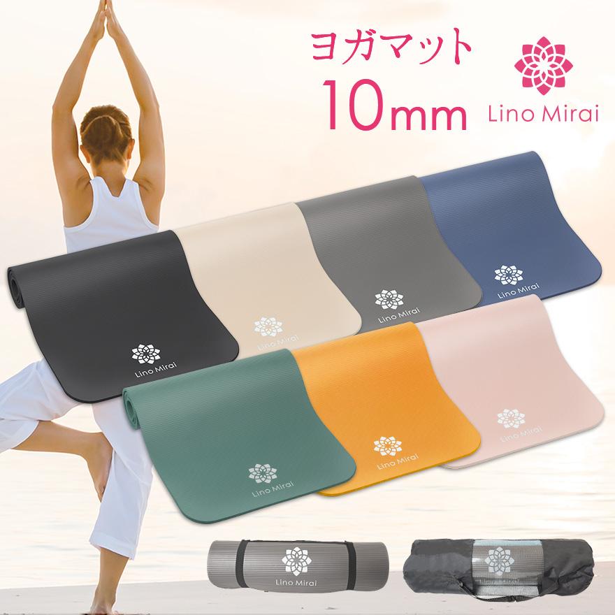 ヨガマット / 極厚10mm / 厚手マット / トレーニングマット / エクササイズマット / ストレッチマット / 体幹トレーニング / フィットネス / 自宅トレ / 宅トレ / NBRマット / 収納ケース付き / Lino Mirai