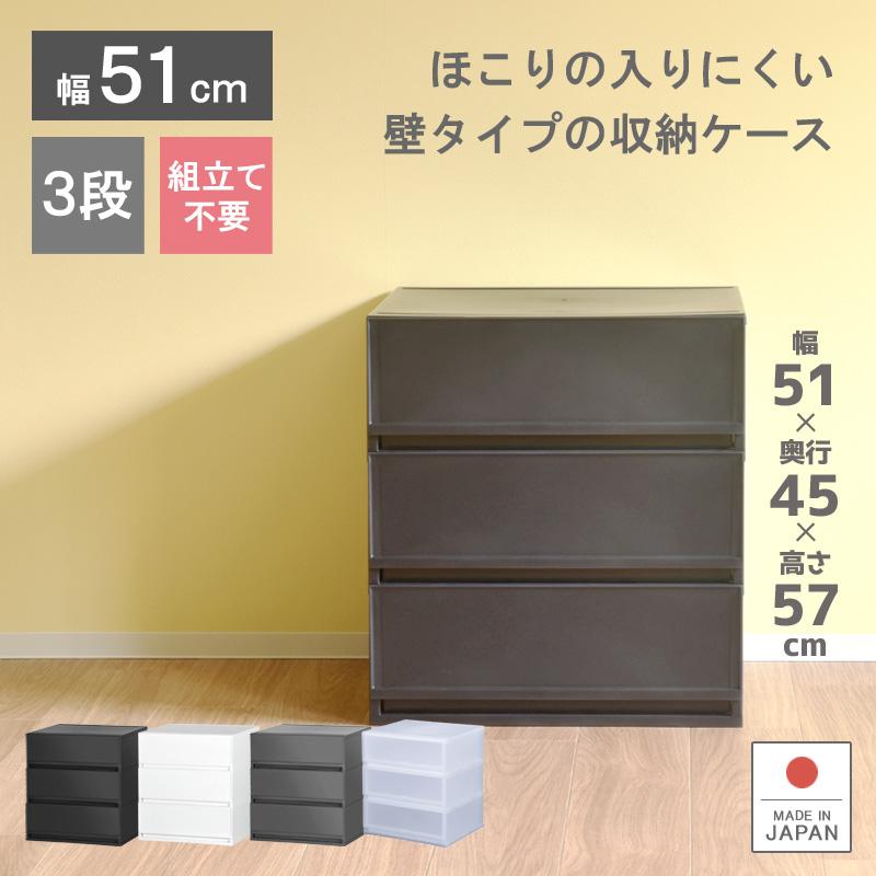 衣装ケース 収納ケース プラスチック 引き出し チェスト 3段 幅51cm 奥行45cm 高さ57cm 押入れ収納 衣替え 収納ボックス おしゃれ プラストベーシックFR5103