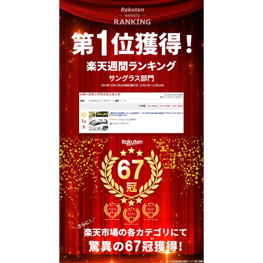 偏光は、物体から反射された光で、ぎらついた光のことです。当製品のレンズにはこの偏光をカットするレンズを採用しています。眩しいぎらついた光を防ぎ、クリアな視界を提供します。